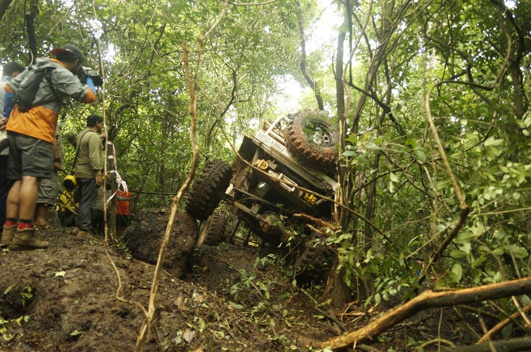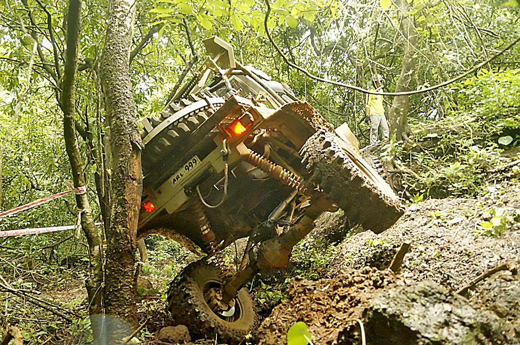 Day 6 July 26th, The competition starts at 11.00 am, SS19 SS22 in Twilight zone of the most beautiful green mountain field agricultural forest park Mina, queue. Today's traps are considered the ultimate off-road adventure of the most toughest for two days in a private forest. It is the hill area with beautiful clear water streams, many of peacocks and traces of many wildlife. All obstacles in each trap have dangerous adventures with large stones messily Like stone steps and some are steep cliffs, almost ninety degrees. Every SS are waiting to challenge for the brave offroad warriors. To get through all trapped, it can destroy almost all types of suspension, gears, shafts, shock absorbers, joints, including sling or rope and winch machines. Therefore not surprising today's action is exciting from all offroaders hardcore heart, fighting, not retreating of no fear, grueling, extreme In the rain throughout the day , some cars miss upside down . And many cars broke down Until looking at this forest like a cemetery for damaged gear, axle, witch, sling and rope but no any teams surrender until the middle of the night.