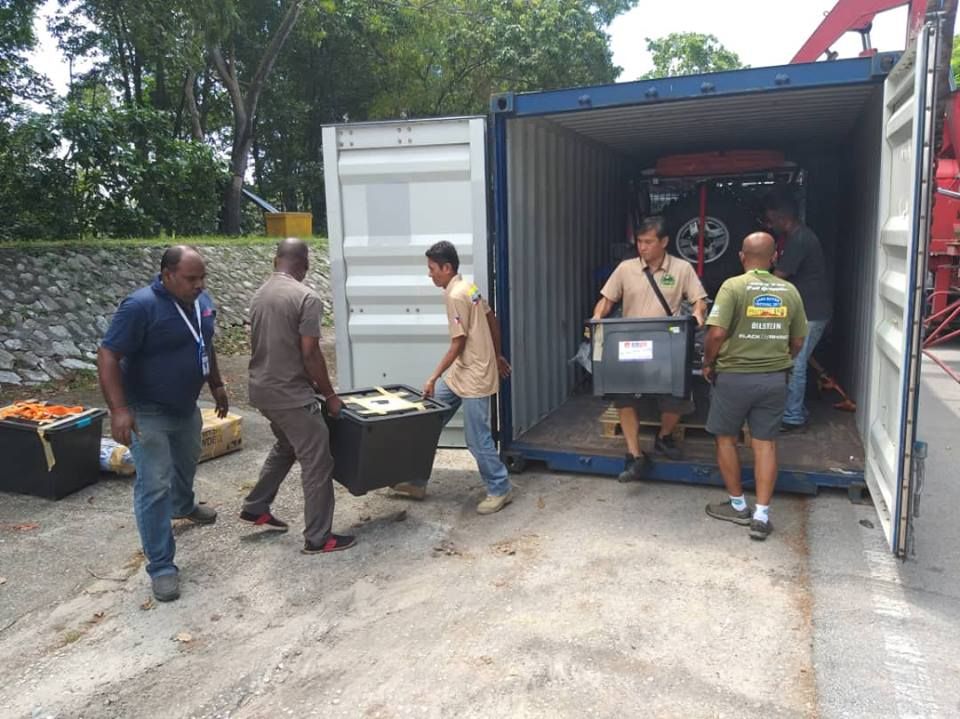 Team Philippines. 23 Nov: Container arrived late (shipping/typhoon delay) but quick-fix job by JIM Logistics (RFC official freight handler) it was a speedy customs clearance & quickly handed over to Team PH