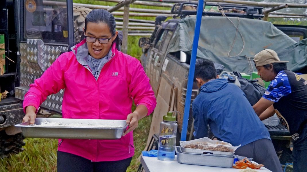 Day 9, December 5th, The first group of convoy sent three cars and peoples travel to help the second groups to come down from the summit of Slukut. The other cars and the rest peoples helped to bring the car collapsed from a long dangerous steep hill before coming down to Semamu Village. About 09.00 p.m. the 8 cars of group two could travel reach the village of Semamu and spend the night here. The goal for next day was to do medical activities, check up health, and give general basic medicine including items donated for the villagers of Semamu Village.