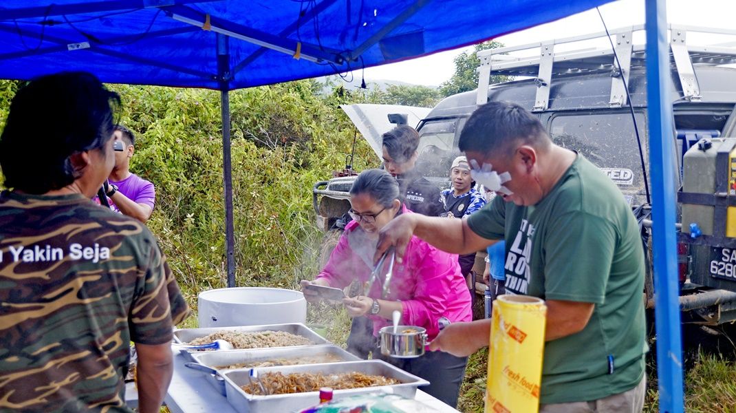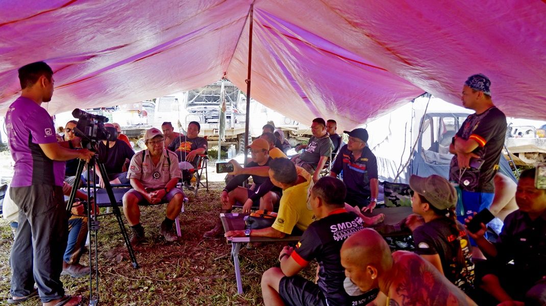 Day 8, December 4th, The ten vehicles of first group had to waiting for the second group 8 cars, so today were a relaxing day of the first off-road group. Everyone stayed in the homestay of Semamu Village. And the villagers went to fishing by fishhooks and fish net to catch a big fish to sale to offroaders which it were famous fish for the most delicious taste and also very expensive of Barob fish and Pelian fish, in the market price up to 900 -1,500 ringgit (8,100 - 10,500 baht) per 1 kg. And as well as helping to recovery the overturned car on the road which was about 5 km away from the village, brought down near the crossroads before into the village. In the evening there had good news, could contact the second group via radio and knew that they had fought hard to the top of Mount Slukut but bad luck had a few cars complete to driving and had to camp overnight on top of the hill surrounded with a strong wind, cold air covered by white clouds and fog.