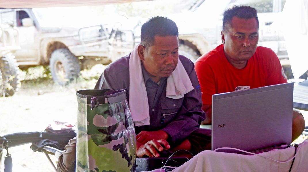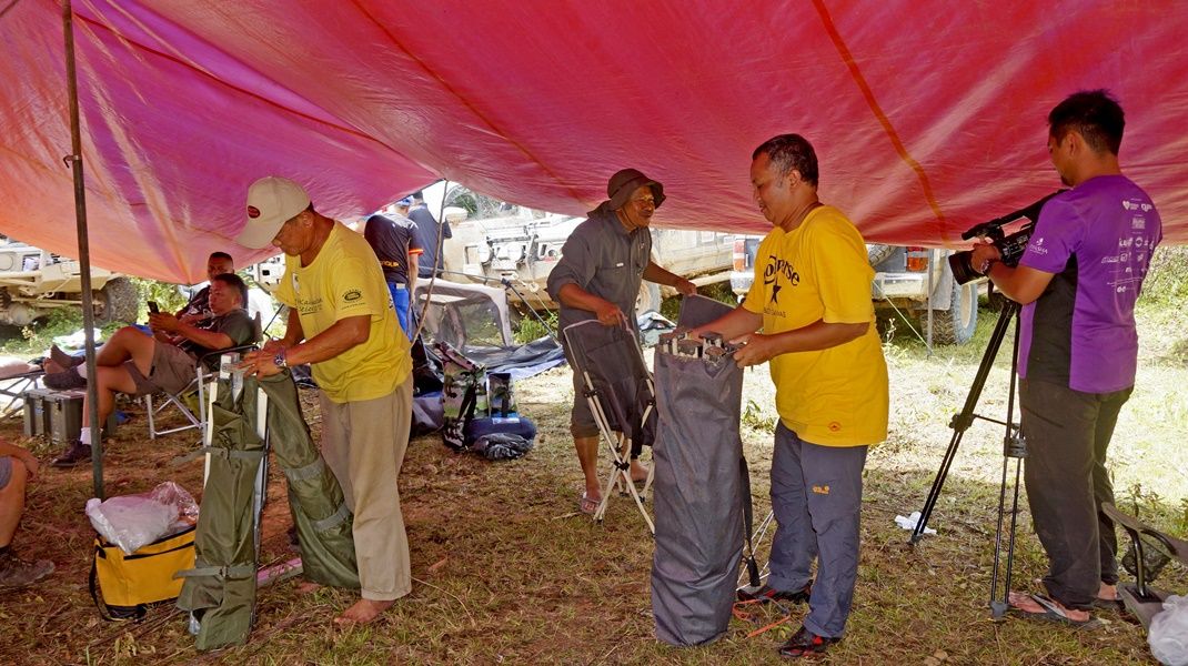 Day 6, December 2nd, The weather was very cold last night. The first group of convoy woke up early in the morning and began to climb up Mount Slukut the highest peak of Borneo in Kalimantan Indonesia at a height of 1,558 meters above sea level about halfway between Benuang Village Semamu distance 65 km. The first group of Convoy 10 cars started from the eighth kilometer moving approximately 500 meters found obstracle a large tree hundreds of years old falling block the road, using about an hour to cut and clear the tree. After that it were a long way tough, steep and dangerous mountains full of holes,channel, big and small rocks, Everyone were tiredness from walking up and down the high mountains for winching cars and had to using very long rope in many places. The steep and hard-core path seems like none stop. There were no big tree for winching , had to using ground anchor in difficult with a soft ground that pervades from rain which made the ground wet and slippery from liquid soil on the top. The toughest obstracles had more than 5-6 places. Man and machine had to fighting with hardcore heart and reach the summit of mountain Slukut at almost midnight and try to continue moving forward down from the peak of mountain but the way down from the mountain were still very dangerous in the darkness, therefore convoy group one had to stay overnight near the summit of Mount Slukut among the strong cold wind blowing and surrounding with the white mist.