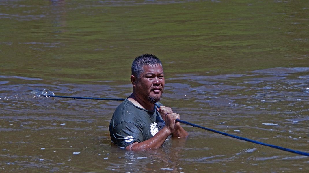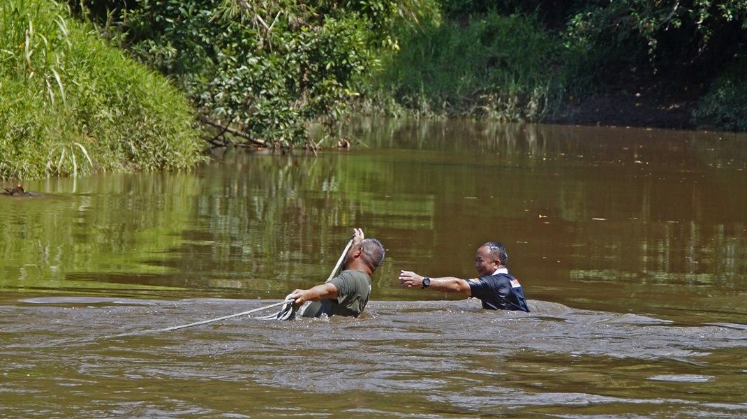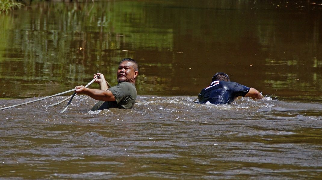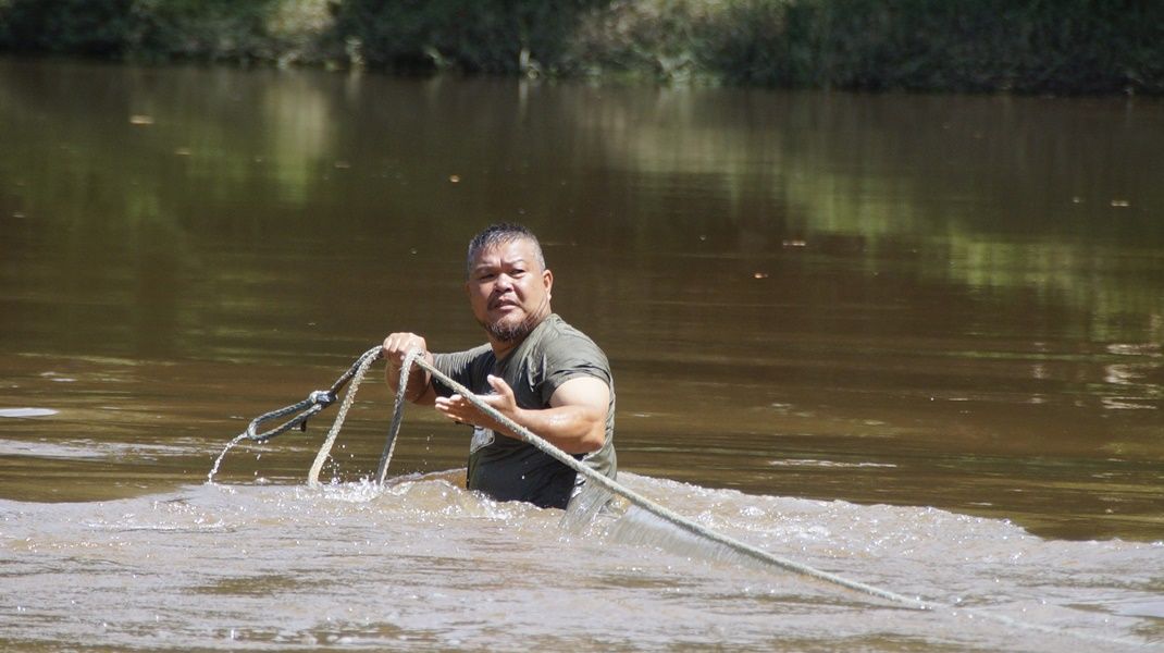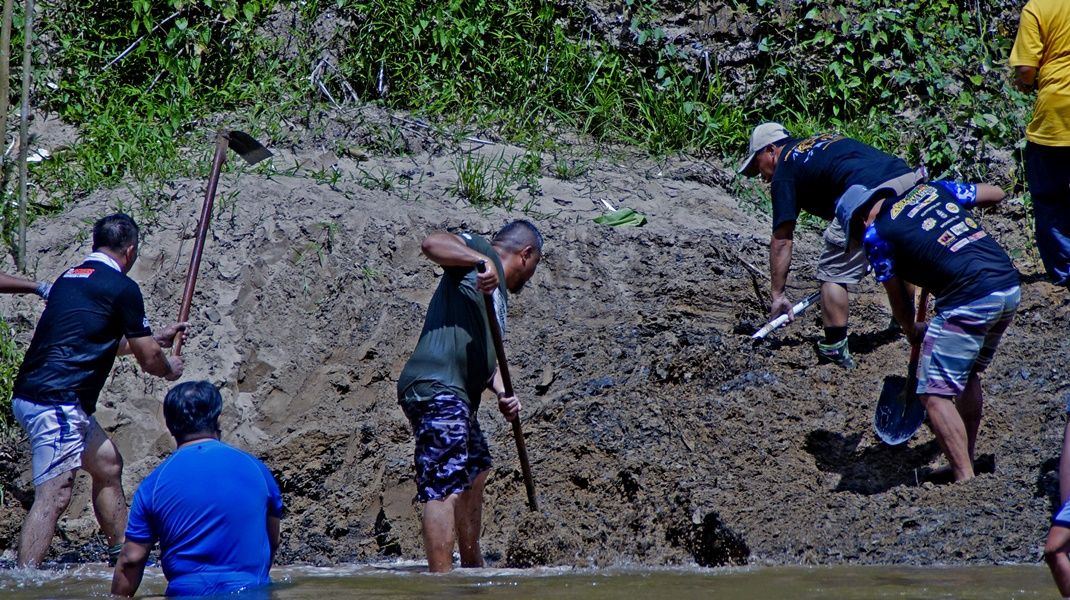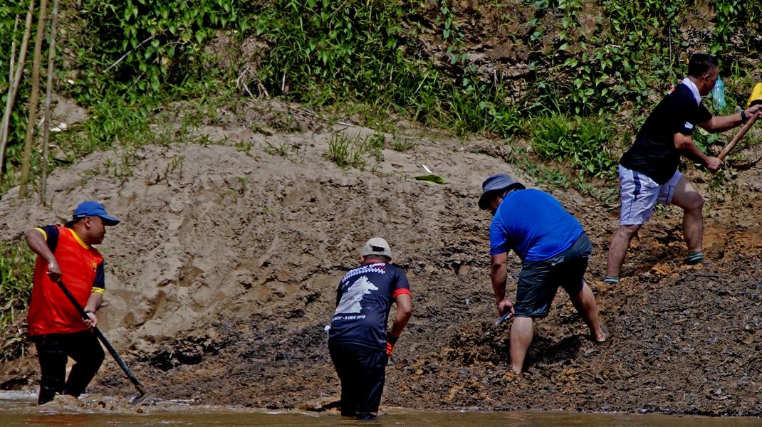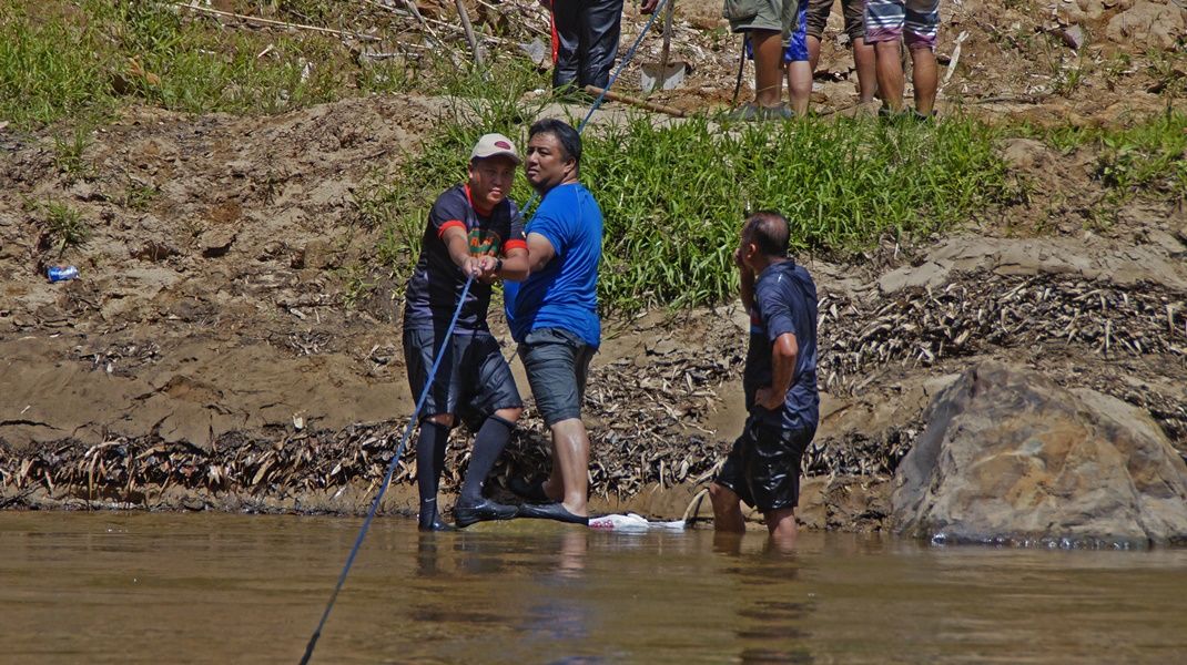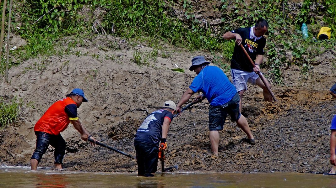 Day 8, December 4th, The ten vehicles of first group had to waiting for the second group 8 cars, so today were a relaxing day of the first off-road group. Everyone stayed in the homestay of Semamu Village. And the villagers went to fishing by fishhooks and fish net to catch a big fish to sale to offroaders which it were famous fish for the most delicious taste and also very expensive of Barob fish and Pelian fish, in the market price up to 900 -1,500 ringgit (8,100 - 10,500 baht) per 1 kg. And as well as helping to recovery the overturned car on the road which was about 5 km away from the village, brought down near the crossroads before into the village. In the evening there had good news, could contact the second group via radio and knew that they had fought hard to the top of Mount Slukut but bad luck had a few cars complete to driving and had to camp overnight on top of the hill surrounded with a strong wind, cold air covered by white clouds and fog.