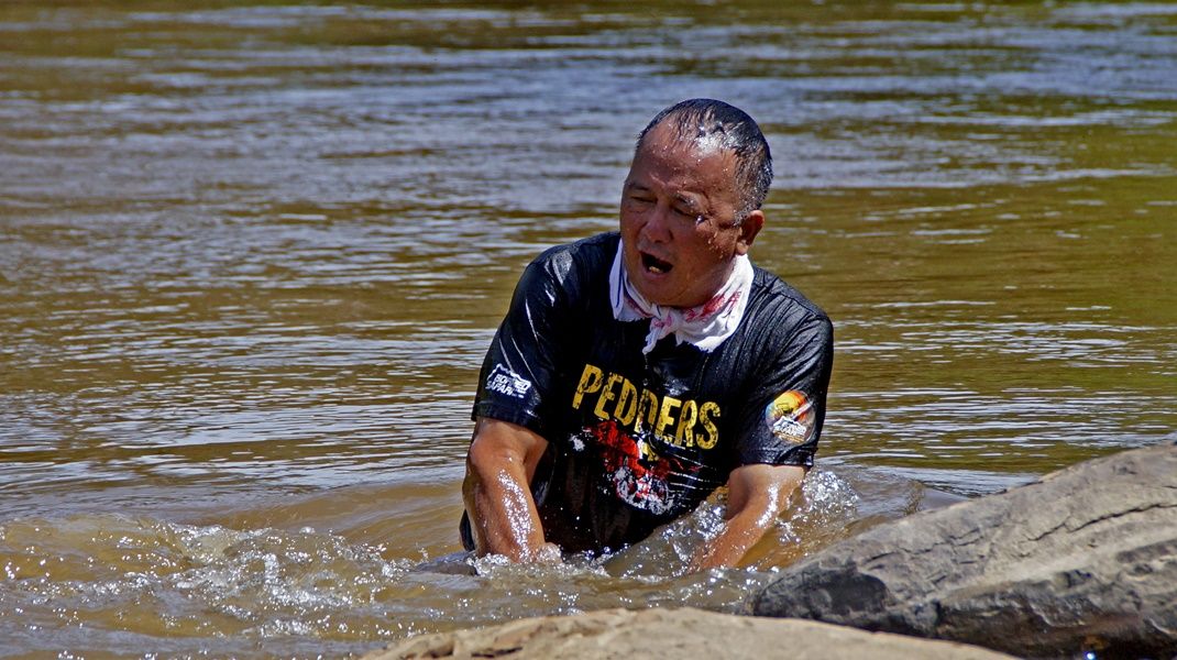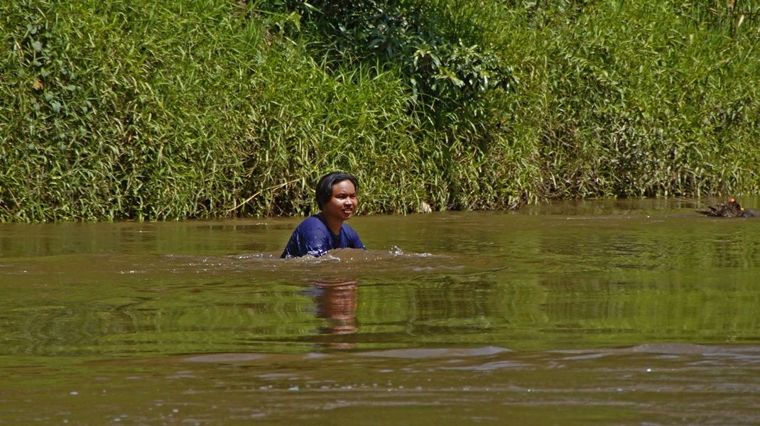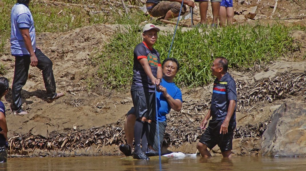 The whole road were slippery and muddy, going up and down a high steep and long path of the mountains, risking to fall down into deep dale. All car drivers must use their skills and experience offroad to the fullest. But all of the convoy couldnt cross the Benuang River had to stop traveling and camping overnight near the river on a hill not far from Benuang village.