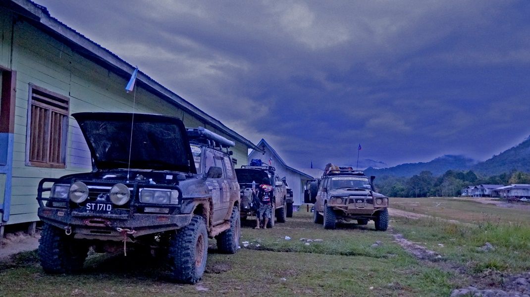 After regroups were successed at night about 10 pm convoy group One, 5 cars separated immediately In order to go to Malinau city with a distance approximate 110 kilometers. Which was still an off-road route in the middle heart of the rainforest went up and down along steep mountains many curving paths the road surface was slippery and almost rainy all the time. Must be extremely careful during travel up and down the steep hill, more slippery, dangerous all the way. It took a total of more seven hours to travel until almost dawn at about 5 pm on December 6, arrived at the beautiful Lundayeh village suburb of Malinau (the best cultural village award). All 5 cars relax at an Indonesian off-road friend's house for about two hours. And about 7 am in the morning rushed departing to Tanjung Selor city.