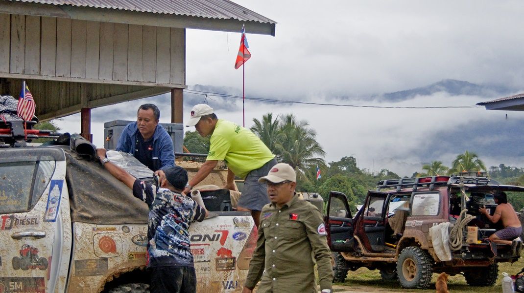 Day 8, December 4th, The ten vehicles of first group had to waiting for the second group 8 cars, so today were a relaxing day of the first off-road group. Everyone stayed in the homestay of Semamu Village. And the villagers went to fishing by fishhooks and fish net to catch a big fish to sale to offroaders which it were famous fish for the most delicious taste and also very expensive of Barob fish and Pelian fish, in the market price up to 900 -1,500 ringgit (8,100 - 10,500 baht) per 1 kg. And as well as helping to recovery the overturned car on the road which was about 5 km away from the village, brought down near the crossroads before into the village. In the evening there had good news, could contact the second group via radio and knew that they had fought hard to the top of Mount Slukut but bad luck had a few cars complete to driving and had to camp overnight on top of the hill surrounded with a strong wind, cold air covered by white clouds and fog.