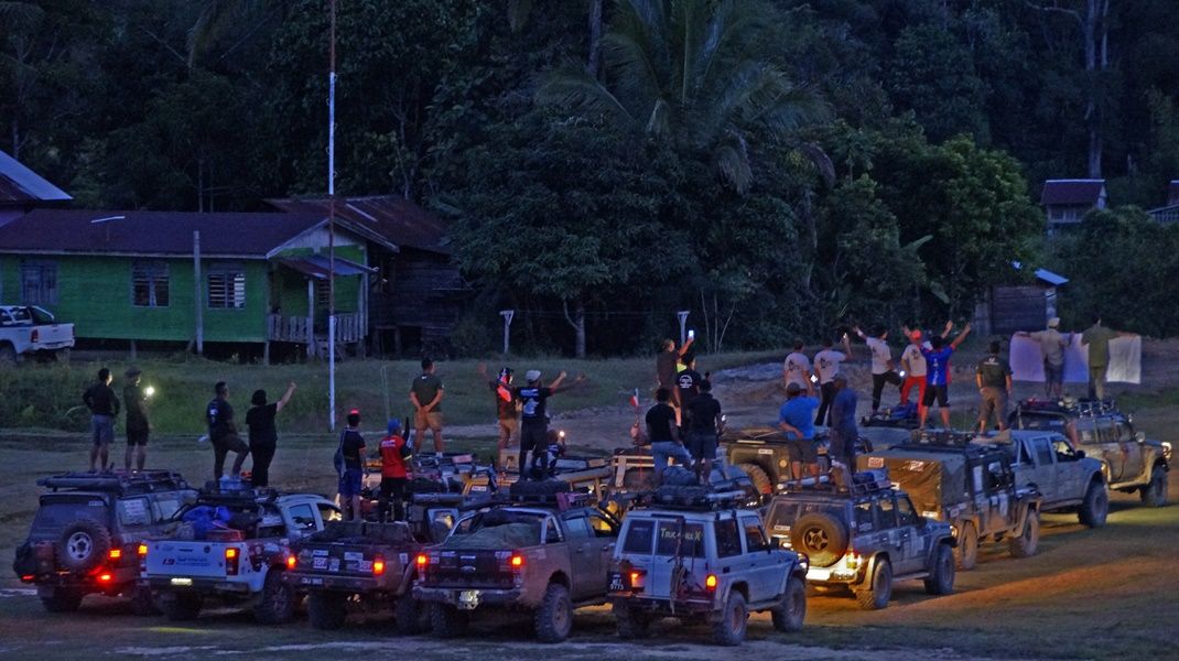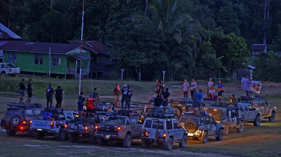 Day 9, December 5th, The first group of convoy sent three cars and peoples travel to help the second groups to come down from the summit of Slukut. The other cars and the rest peoples helped to bring the car collapsed from a long dangerous steep hill before coming down to Semamu Village. About 09.00 p.m. the 8 cars of group two could travel reach the village of Semamu and spend the night here. The goal for next day was to do medical activities, check up health, and give general basic medicine including items donated for the villagers of Semamu Village.