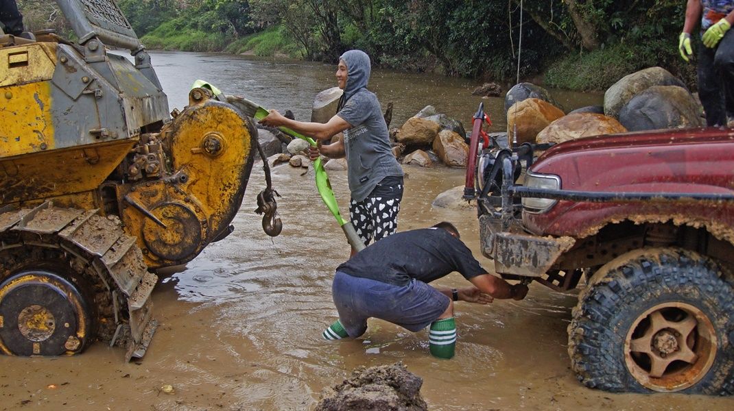 Day 5, December 1st, The off-road route came to the extreme toughest as the twilight zone Mysterious, beautiful and dangerous between Benuang village Semamu village distance approximately 65km , The river still high water level, strong flow, so it had to hire a tractor to drag all cars across the Benaung River. And all convoy move forward only about 4 km had to adventure on high mountains with landslides, ruthless rocks and up and down danger steep mountains about 200 meters long, Every cars had to use winch pull the car up tough in many distances. The first group of convoy 10 cars could travel only 8 km had to stop for camping overnight. And Convoy of second group consisting of 8 vehicles had to fighting and following convoy group one on next day.