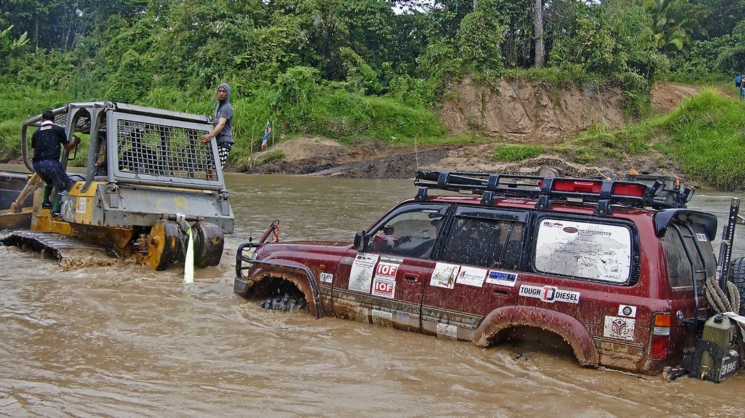 Day 7, December 3rd, the first group of 10 cars started to travel up the steep slope just under a hundred meters found the long hardcore obstracles with a line of stone like bridges full of many rutted waiting and the side were a deep abyss. And turning up to a rocky hill with many danger trenches to destroying the car's suspension along the hill road. The last hundred meters were a road that creates a large long rutting which tough and brutally, on this obstracle had to using winch by ground anchor and a large tree stump helps to winching. All 10 cars of first group spent 7 hours for passing the last hardcore obstracles. But while traveling down hill to the village of Semamu an accident occurred when a car overturned on a steep curving turn, lucky no one were hurt and arrived at Semamu village on 10 p.m.
