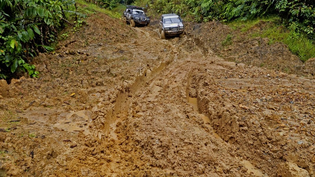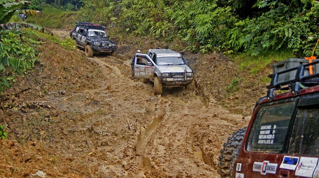 After regroups were successed at night about 10 pm convoy group One, 5 cars separated immediately In order to go to Malinau city with a distance approximate 110 kilometers. Which was still an off-road route in the middle heart of the rainforest went up and down along steep mountains many curving paths the road surface was slippery and almost rainy all the time. Must be extremely careful during travel up and down the steep hill, more slippery, dangerous all the way. It took a total of more seven hours to travel until almost dawn at about 5 pm on December 6, arrived at the beautiful Lundayeh village suburb of Malinau (the best cultural village award). All 5 cars relax at an Indonesian off-road friend's house for about two hours. And about 7 am in the morning rushed departing to Tanjung Selor city.
