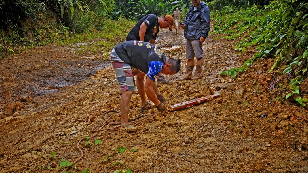 The whole road were slippery and muddy, going up and down a high steep and long path of the mountains, risking to fall down into deep dale. All car drivers must use their skills and experience offroad to the fullest. But all of the convoy couldnt cross the Benuang River had to stop traveling and camping overnight near the river on a hill not far from Benuang village.