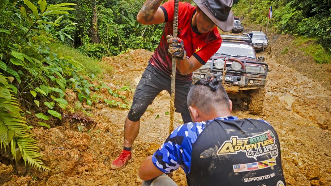 Day 8, December 4th, The ten vehicles of first group had to waiting for the second group 8 cars, so today were a relaxing day of the first off-road group. Everyone stayed in the homestay of Semamu Village. And the villagers went to fishing by fishhooks and fish net to catch a big fish to sale to offroaders which it were famous fish for the most delicious taste and also very expensive of Barob fish and Pelian fish, in the market price up to 900 -1,500 ringgit (8,100 - 10,500 baht) per 1 kg. And as well as helping to recovery the overturned car on the road which was about 5 km away from the village, brought down near the crossroads before into the village. In the evening there had good news, could contact the second group via radio and knew that they had fought hard to the top of Mount Slukut but bad luck had a few cars complete to driving and had to camp overnight on top of the hill surrounded with a strong wind, cold air covered by white clouds and fog.