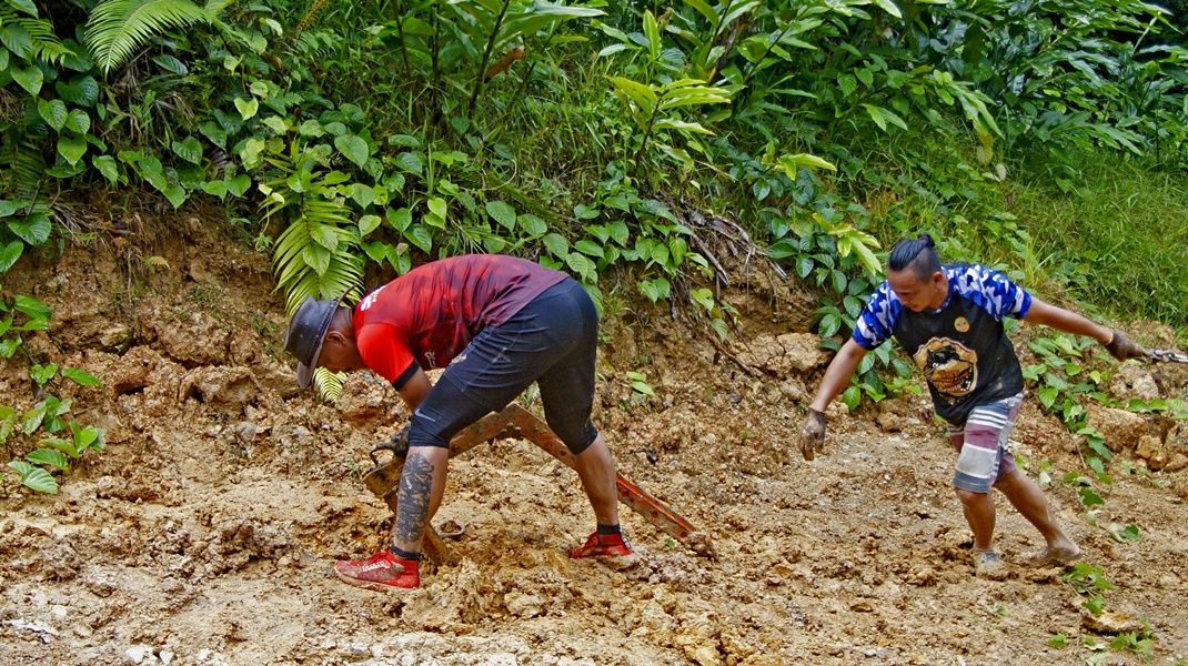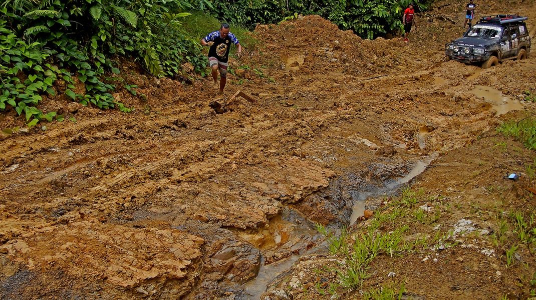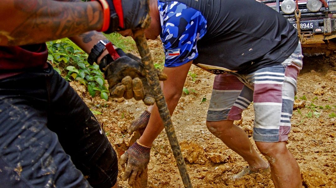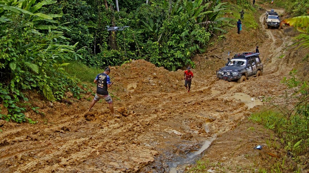 Day 7, December 3rd, the first group of 10 cars started to travel up the steep slope just under a hundred meters found the long hardcore obstracles with a line of stone like bridges full of many rutted waiting and the side were a deep abyss. And turning up to a rocky hill with many danger trenches to destroying the car's suspension along the hill road. The last hundred meters were a road that creates a large long rutting which tough and brutally, on this obstracle had to using winch by ground anchor and a large tree stump helps to winching. All 10 cars of first group spent 7 hours for passing the last hardcore obstracles. But while traveling down hill to the village of Semamu an accident occurred when a car overturned on a steep curving turn, lucky no one were hurt and arrived at Semamu village on 10 p.m.