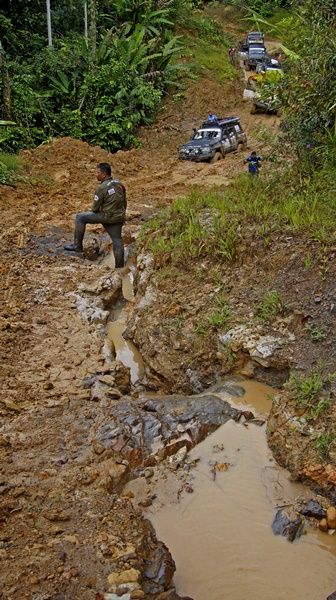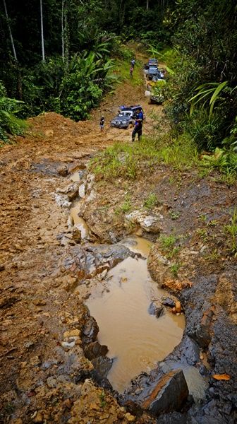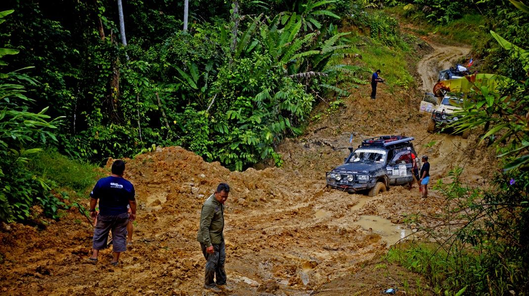 After regroups were successed at night about 10 pm convoy group One, 5 cars separated immediately In order to go to Malinau city with a distance approximate 110 kilometers. Which was still an off-road route in the middle heart of the rainforest went up and down along steep mountains many curving paths the road surface was slippery and almost rainy all the time. Must be extremely careful during travel up and down the steep hill, more slippery, dangerous all the way. It took a total of more seven hours to travel until almost dawn at about 5 pm on December 6, arrived at the beautiful Lundayeh village suburb of Malinau (the best cultural village award). All 5 cars relax at an Indonesian off-road friend's house for about two hours. And about 7 am in the morning rushed departing to Tanjung Selor city.