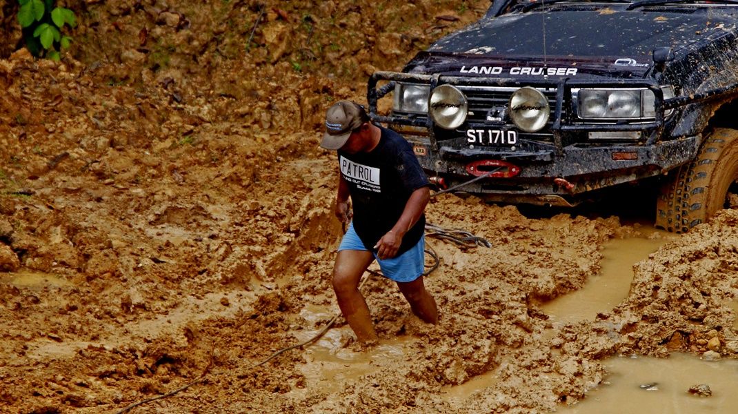 Day 8, December 4th, The ten vehicles of first group had to waiting for the second group 8 cars, so today were a relaxing day of the first off-road group. Everyone stayed in the homestay of Semamu Village. And the villagers went to fishing by fishhooks and fish net to catch a big fish to sale to offroaders which it were famous fish for the most delicious taste and also very expensive of Barob fish and Pelian fish, in the market price up to 900 -1,500 ringgit (8,100 - 10,500 baht) per 1 kg. And as well as helping to recovery the overturned car on the road which was about 5 km away from the village, brought down near the crossroads before into the village. In the evening there had good news, could contact the second group via radio and knew that they had fought hard to the top of Mount Slukut but bad luck had a few cars complete to driving and had to camp overnight on top of the hill surrounded with a strong wind, cold air covered by white clouds and fog.