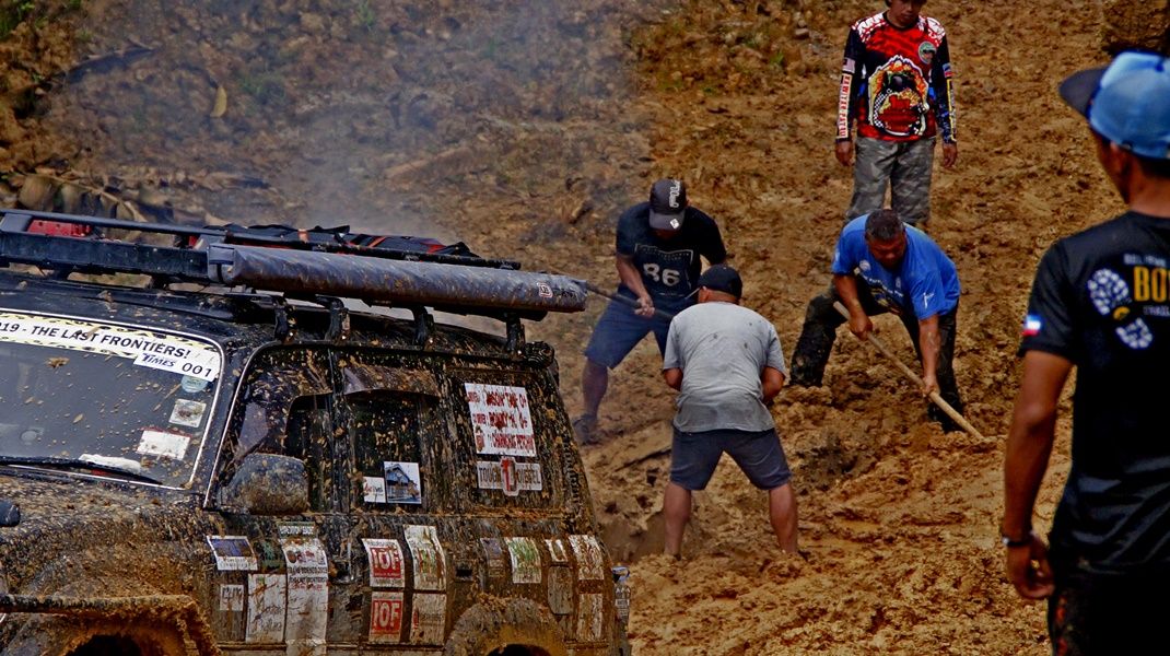 At around 4 pm The final passion off-road adventure journey for challenging and fun approximately 3-5km began at the border monument and had funny time with many obtracles short off-road routes and the last point was a broken bridge couldn't skip so all offroaders had to put the wood on the stream as a bridge for all cars to run up which was full of excitement adventure in the rain and rush away from the strong water flows down and high up levels rapidly into the turbulent flow.