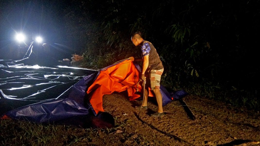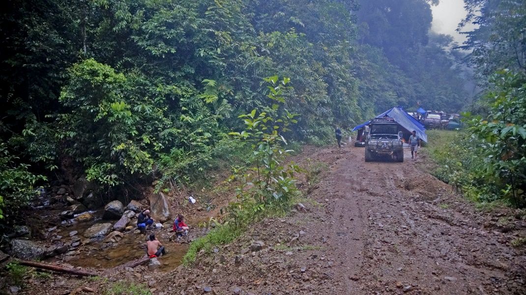 The whole road were slippery and muddy, going up and down a high steep and long path of the mountains, risking to fall down into deep dale. All car drivers must use their skills and experience offroad to the fullest. But all of the convoy couldnt cross the Benuang River had to stop traveling and camping overnight near the river on a hill not far from Benuang village.