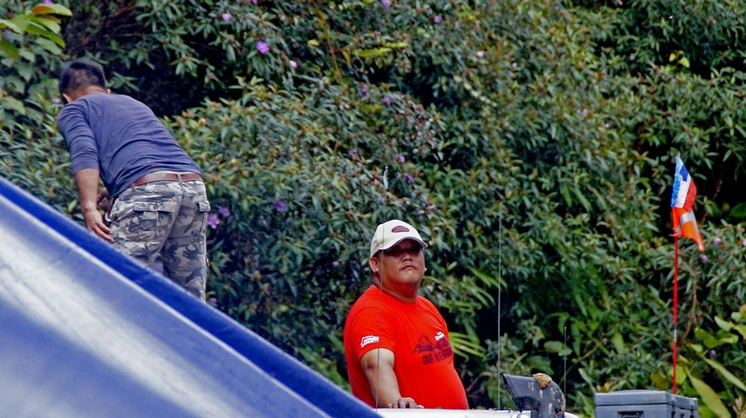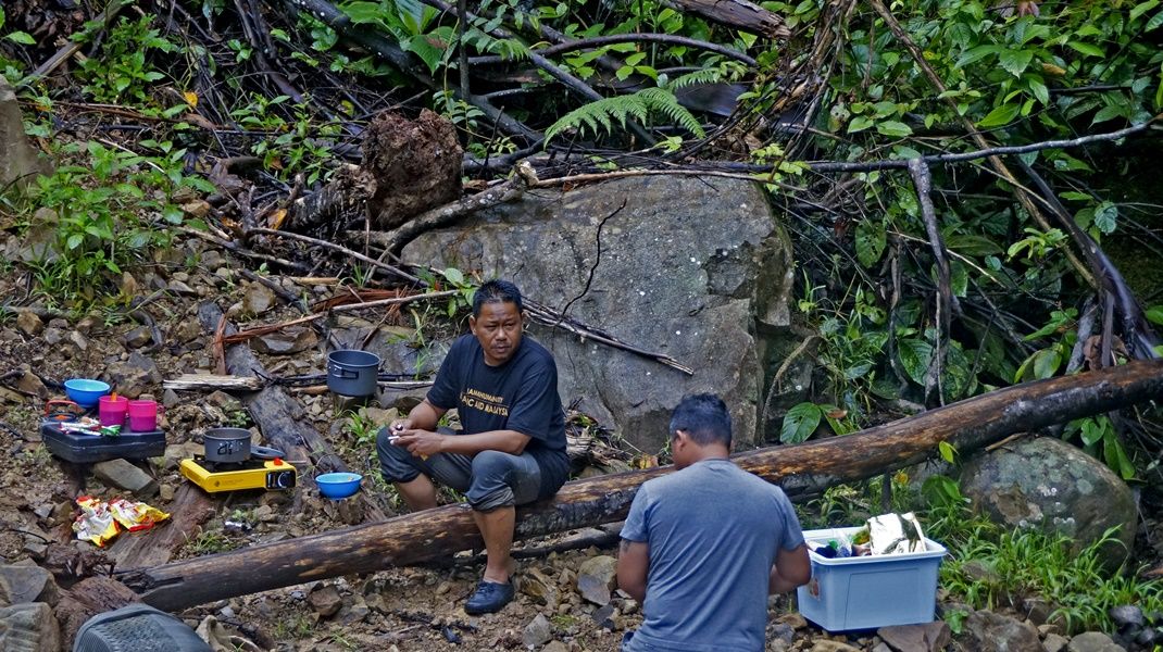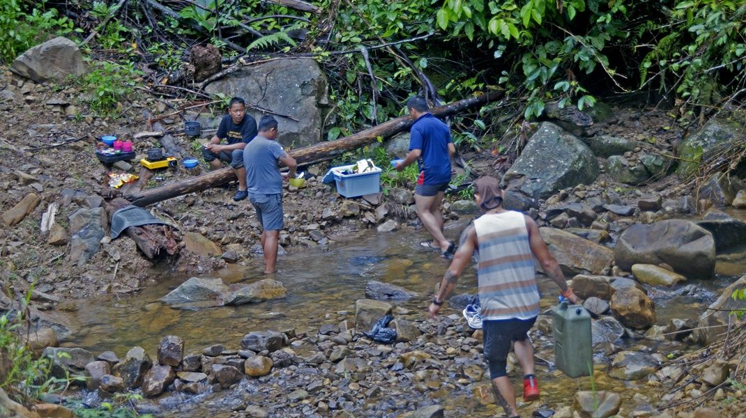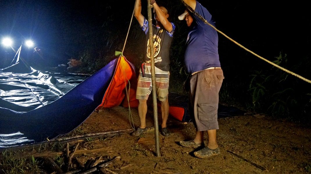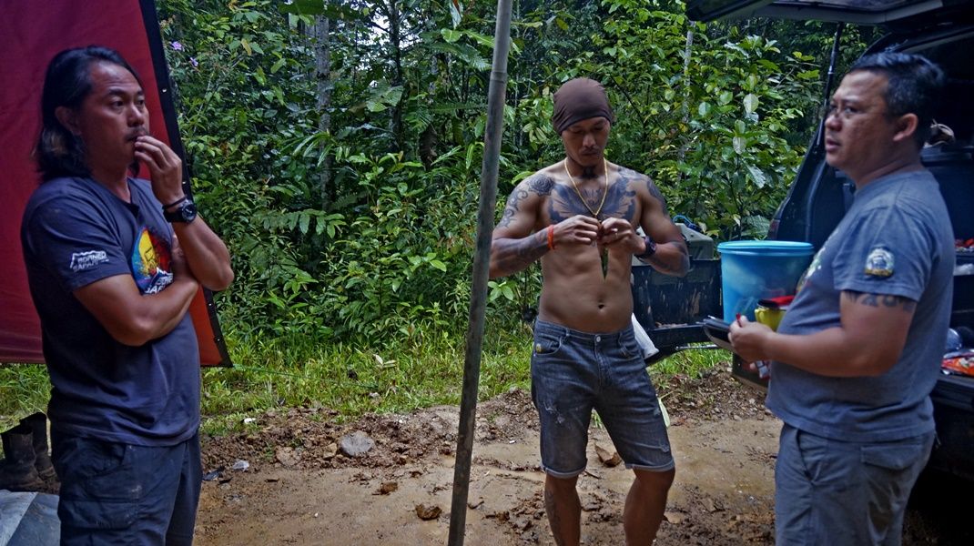 Day 8, December 4th, The ten vehicles of first group had to waiting for the second group 8 cars, so today were a relaxing day of the first off-road group. Everyone stayed in the homestay of Semamu Village. And the villagers went to fishing by fishhooks and fish net to catch a big fish to sale to offroaders which it were famous fish for the most delicious taste and also very expensive of Barob fish and Pelian fish, in the market price up to 900 -1,500 ringgit (8,100 - 10,500 baht) per 1 kg. And as well as helping to recovery the overturned car on the road which was about 5 km away from the village, brought down near the crossroads before into the village. In the evening there had good news, could contact the second group via radio and knew that they had fought hard to the top of Mount Slukut but bad luck had a few cars complete to driving and had to camp overnight on top of the hill surrounded with a strong wind, cold air covered by white clouds and fog.