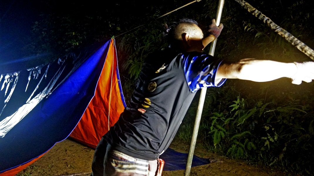 Day 6, December 2nd, The weather was very cold last night. The first group of convoy woke up early in the morning and began to climb up Mount Slukut the highest peak of Borneo in Kalimantan Indonesia at a height of 1,558 meters above sea level about halfway between Benuang Village Semamu distance 65 km. The first group of Convoy 10 cars started from the eighth kilometer moving approximately 500 meters found obstracle a large tree hundreds of years old falling block the road, using about an hour to cut and clear the tree. After that it were a long way tough, steep and dangerous mountains full of holes,channel, big and small rocks, Everyone were tiredness from walking up and down the high mountains for winching cars and had to using very long rope in many places. The steep and hard-core path seems like none stop. There were no big tree for winching , had to using ground anchor in difficult with a soft ground that pervades from rain which made the ground wet and slippery from liquid soil on the top. The toughest obstracles had more than 5-6 places. Man and machine had to fighting with hardcore heart and reach the summit of mountain Slukut at almost midnight and try to continue moving forward down from the peak of mountain but the way down from the mountain were still very dangerous in the darkness, therefore convoy group one had to stay overnight near the summit of Mount Slukut among the strong cold wind blowing and surrounding with the white mist.
