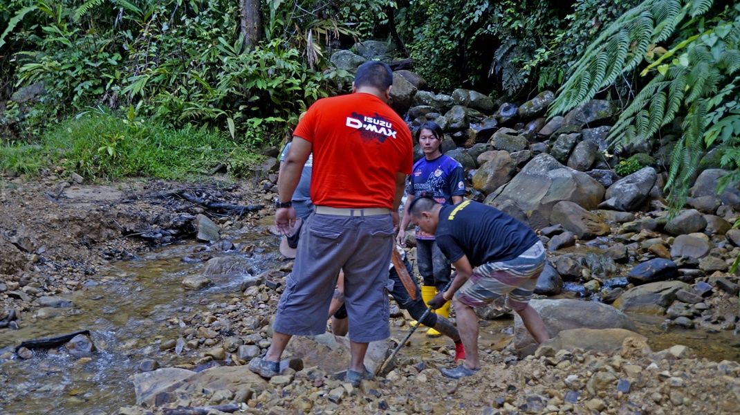 Day 8, December 4th, The ten vehicles of first group had to waiting for the second group 8 cars, so today were a relaxing day of the first off-road group. Everyone stayed in the homestay of Semamu Village. And the villagers went to fishing by fishhooks and fish net to catch a big fish to sale to offroaders which it were famous fish for the most delicious taste and also very expensive of Barob fish and Pelian fish, in the market price up to 900 -1,500 ringgit (8,100 - 10,500 baht) per 1 kg. And as well as helping to recovery the overturned car on the road which was about 5 km away from the village, brought down near the crossroads before into the village. In the evening there had good news, could contact the second group via radio and knew that they had fought hard to the top of Mount Slukut but bad luck had a few cars complete to driving and had to camp overnight on top of the hill surrounded with a strong wind, cold air covered by white clouds and fog.