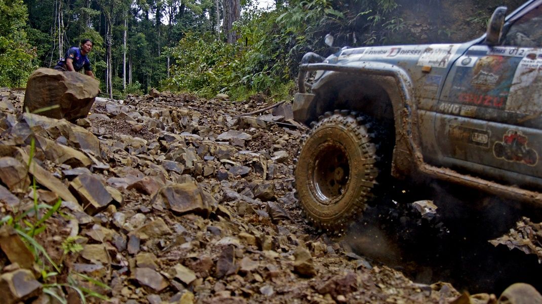 Day 7, December 3rd, the first group of 10 cars started to travel up the steep slope just under a hundred meters found the long hardcore obstracles with a line of stone like bridges full of many rutted waiting and the side were a deep abyss. And turning up to a rocky hill with many danger trenches to destroying the car's suspension along the hill road. The last hundred meters were a road that creates a large long rutting which tough and brutally, on this obstracle had to using winch by ground anchor and a large tree stump helps to winching. All 10 cars of first group spent 7 hours for passing the last hardcore obstracles. But while traveling down hill to the village of Semamu an accident occurred when a car overturned on a steep curving turn, lucky no one were hurt and arrived at Semamu village on 10 p.m.