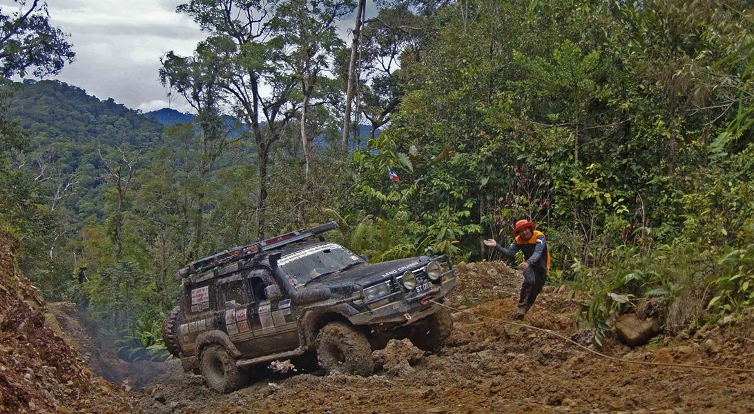 Day 6, December 2nd, The weather was very cold last night. The first group of convoy woke up early in the morning and began to climb up Mount Slukut the highest peak of Borneo in Kalimantan Indonesia at a height of 1,558 meters above sea level about halfway between Benuang Village Semamu distance 65 km. The first group of Convoy 10 cars started from the eighth kilometer moving approximately 500 meters found obstracle a large tree hundreds of years old falling block the road, using about an hour to cut and clear the tree. After that it were a long way tough, steep and dangerous mountains full of holes,channel, big and small rocks, Everyone were tiredness from walking up and down the high mountains for winching cars and had to using very long rope in many places. The steep and hard-core path seems like none stop. There were no big tree for winching , had to using ground anchor in difficult with a soft ground that pervades from rain which made the ground wet and slippery from liquid soil on the top. The toughest obstracles had more than 5-6 places. Man and machine had to fighting with hardcore heart and reach the summit of mountain Slukut at almost midnight and try to continue moving forward down from the peak of mountain but the way down from the mountain were still very dangerous in the darkness, therefore convoy group one had to stay overnight near the summit of Mount Slukut among the strong cold wind blowing and surrounding with the white mist.