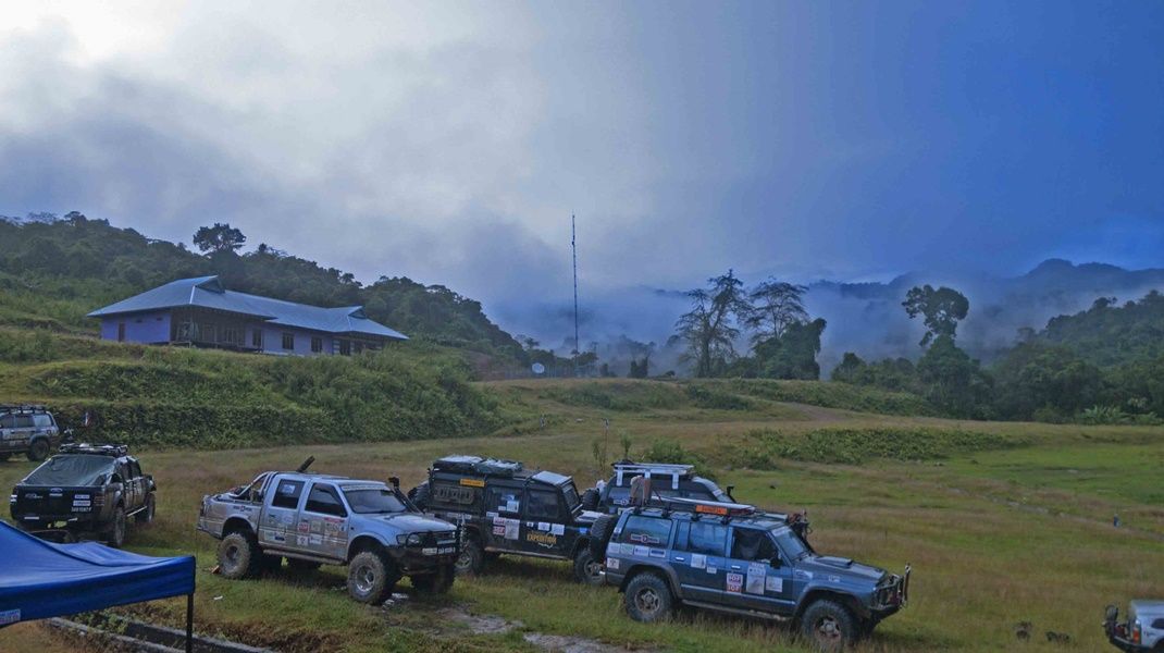 Day 7, December 3rd, the first group of 10 cars started to travel up the steep slope just under a hundred meters found the long hardcore obstracles with a line of stone like bridges full of many rutted waiting and the side were a deep abyss. And turning up to a rocky hill with many danger trenches to destroying the car's suspension along the hill road. The last hundred meters were a road that creates a large long rutting which tough and brutally, on this obstracle had to using winch by ground anchor and a large tree stump helps to winching. All 10 cars of first group spent 7 hours for passing the last hardcore obstracles. But while traveling down hill to the village of Semamu an accident occurred when a car overturned on a steep curving turn, lucky no one were hurt and arrived at Semamu village on 10 p.m.