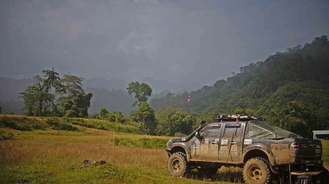 At around 4 pm The final passion off-road adventure journey for challenging and fun approximately 3-5km began at the border monument and had funny time with many obtracles short off-road routes and the last point was a broken bridge couldn't skip so all offroaders had to put the wood on the stream as a bridge for all cars to run up which was full of excitement adventure in the rain and rush away from the strong water flows down and high up levels rapidly into the turbulent flow.
