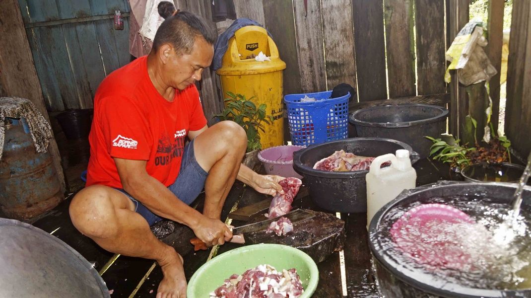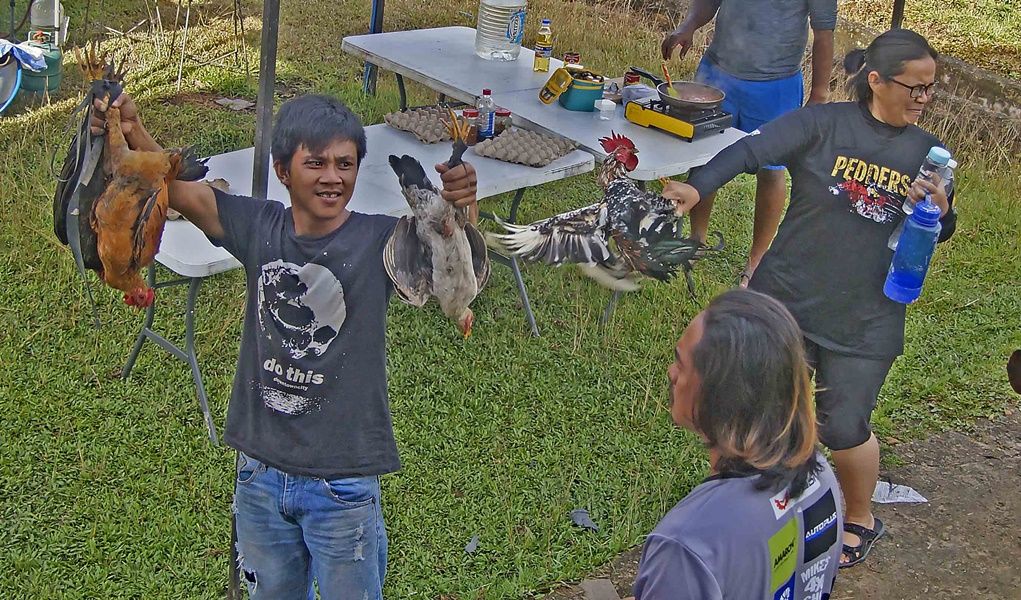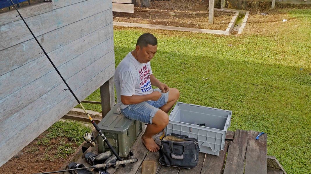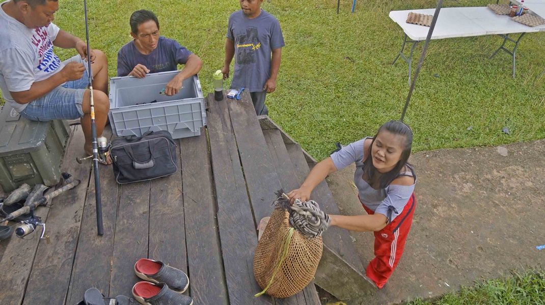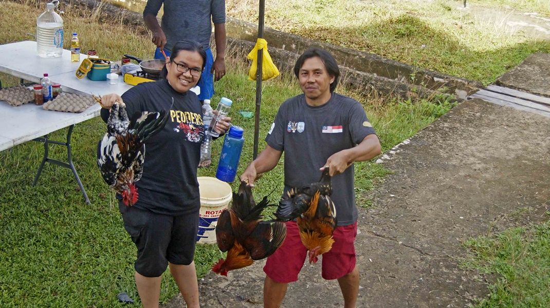 Day 8, December 4th, The ten vehicles of first group had to waiting for the second group 8 cars, so today were a relaxing day of the first off-road group. Everyone stayed in the homestay of Semamu Village. And the villagers went to fishing by fishhooks and fish net to catch a big fish to sale to offroaders which it were famous fish for the most delicious taste and also very expensive of Barob fish and Pelian fish, in the market price up to 900 -1,500 ringgit (8,100 - 10,500 baht) per 1 kg. And as well as helping to recovery the overturned car on the road which was about 5 km away from the village, brought down near the crossroads before into the village. In the evening there had good news, could contact the second group via radio and knew that they had fought hard to the top of Mount Slukut but bad luck had a few cars complete to driving and had to camp overnight on top of the hill surrounded with a strong wind, cold air covered by white clouds and fog.