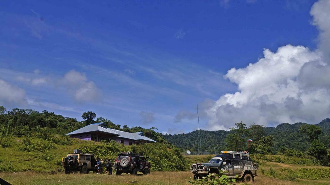 Day 11, December 7th, The trip program to Derawan Island was canceled. Because the delay of the journey for up to four days. At about 7 o'clock in the morning, the first group of 5 cars started to travel back to Malinau city. The distance was approximately 207 km and took about 5 hours, with police escorted cars taking care of safety all of the route. And both groups of convoy had assembled a total of 16 cars again and 1 big bike motorcycle of Italy in Malinau and proceeded to the Simangaris checkpoint Indonesia-Malaysia border The distance is approximately 172 kilometers. The path is a curved mountain path. So many long and steep rises Many path of the roads were under maintenance. The route was still dangerous, be careful to using the fast speed on the mountain along the route. And arrived at Simanggaris border lately it night on 11pm. Camping and overnight here in order to waiting for the immigration polices to stamp passport departure from Indonesia at noon on the next day.