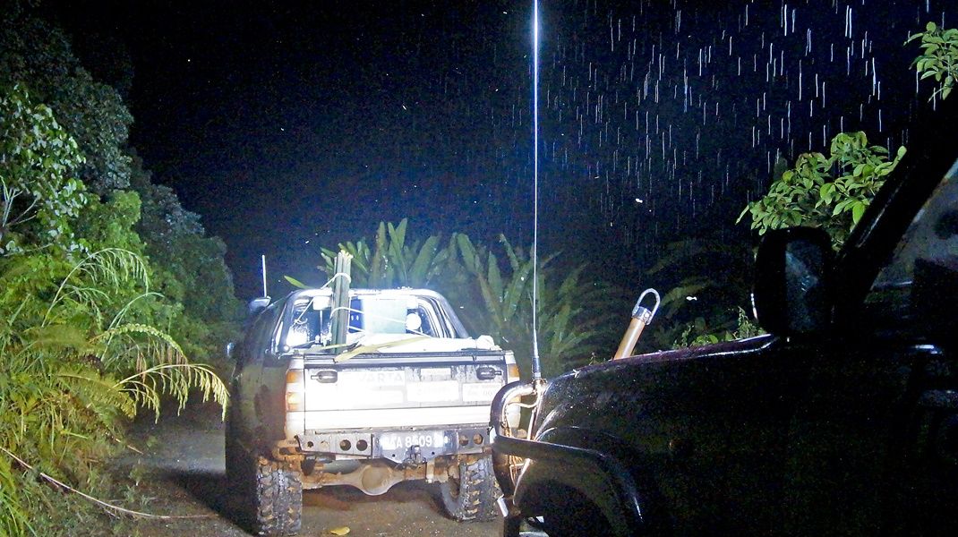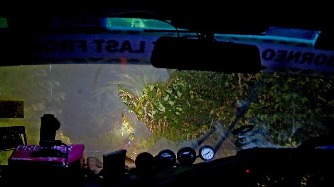 Day 6, December 2nd, The weather was very cold last night. The first group of convoy woke up early in the morning and began to climb up Mount Slukut the highest peak of Borneo in Kalimantan Indonesia at a height of 1,558 meters above sea level about halfway between Benuang Village Semamu distance 65 km. The first group of Convoy 10 cars started from the eighth kilometer moving approximately 500 meters found obstracle a large tree hundreds of years old falling block the road, using about an hour to cut and clear the tree. After that it were a long way tough, steep and dangerous mountains full of holes,channel, big and small rocks, Everyone were tiredness from walking up and down the high mountains for winching cars and had to using very long rope in many places. The steep and hard-core path seems like none stop. There were no big tree for winching , had to using ground anchor in difficult with a soft ground that pervades from rain which made the ground wet and slippery from liquid soil on the top. The toughest obstracles had more than 5-6 places. Man and machine had to fighting with hardcore heart and reach the summit of mountain Slukut at almost midnight and try to continue moving forward down from the peak of mountain but the way down from the mountain were still very dangerous in the darkness, therefore convoy group one had to stay overnight near the summit of Mount Slukut among the strong cold wind blowing and surrounding with the white mist.
