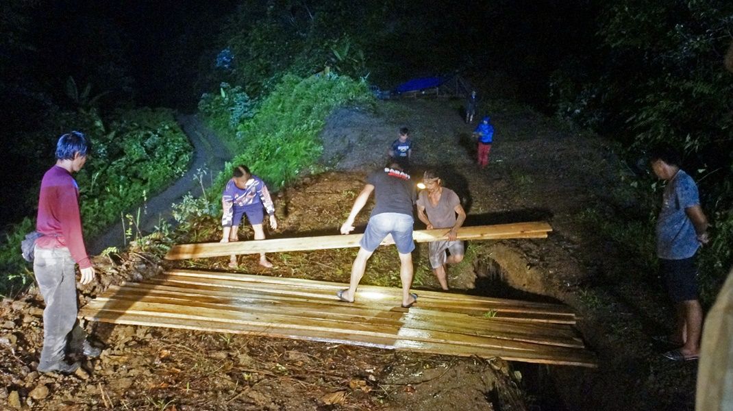 Day 9, December 5th, The first group of convoy sent three cars and peoples travel to help the second groups to come down from the summit of Slukut. The other cars and the rest peoples helped to bring the car collapsed from a long dangerous steep hill before coming down to Semamu Village. About 09.00 p.m. the 8 cars of group two could travel reach the village of Semamu and spend the night here. The goal for next day was to do medical activities, check up health, and give general basic medicine including items donated for the villagers of Semamu Village.