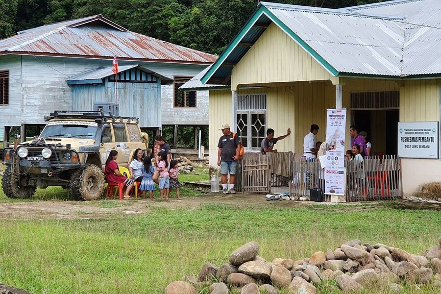 Day 9, December 5th, The first group of convoy sent three cars and peoples travel to help the second groups to come down from the summit of Slukut. The other cars and the rest peoples helped to bring the car collapsed from a long dangerous steep hill before coming down to Semamu Village. About 09.00 p.m. the 8 cars of group two could travel reach the village of Semamu and spend the night here. The goal for next day was to do medical activities, check up health, and give general basic medicine including items donated for the villagers of Semamu Village.