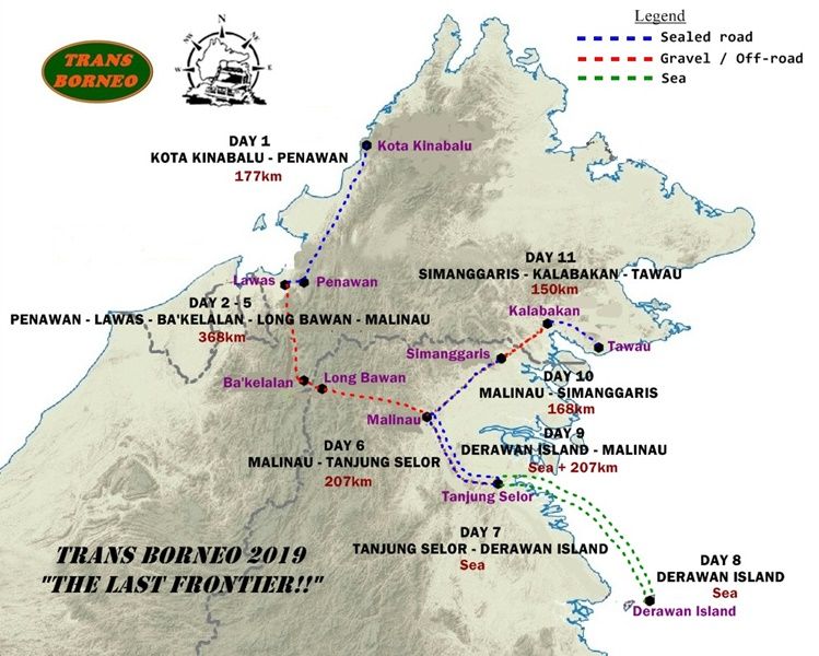 The 4x4 travel Off Road Expedition since 1988 lasting 31 years on Borneo and the longest in Asia 10 times in the past, this is the 11th travel management "TRANSBORNEO 2019 The LAST FRONTIERS" between 27 Nov - 8 Dec 2019. In the route SABAH MALAYSIA (Kota Kinabalu Penawan) SARAWAK MALAYSIA (Lawas Bakelalan) NORTH KALIMANTAN INDONESIA (Long Bawan Benuang Semamu Tanjung Selor Derawan Islands - Tanjung Selor-Malinau-Simanggaris) SABAH MALAYSIA (Serudong-Kalabakan-Tawau) was held by MOHD.Anuar Bin Abdul Ghani and travel distance of approximately 2,000 km. In the target expectation that are Expect the Unexpected) which two years ago, the concept of TRANS BORNEO 2017 "Into The Heart Of Borneo" traveled to Kalimantan Indonesia failed to do. It couldnt cross the border between Malaysia - Indonesia in the area of the Simanggaris Monument Channel.