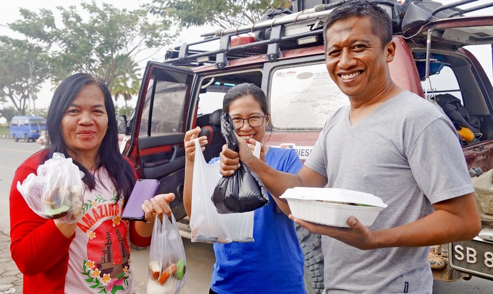 Day 9, December 5th, The first group of convoy sent three cars and peoples travel to help the second groups to come down from the summit of Slukut. The other cars and the rest peoples helped to bring the car collapsed from a long dangerous steep hill before coming down to Semamu Village. About 09.00 p.m. the 8 cars of group two could travel reach the village of Semamu and spend the night here. The goal for next day was to do medical activities, check up health, and give general basic medicine including items donated for the villagers of Semamu Village.