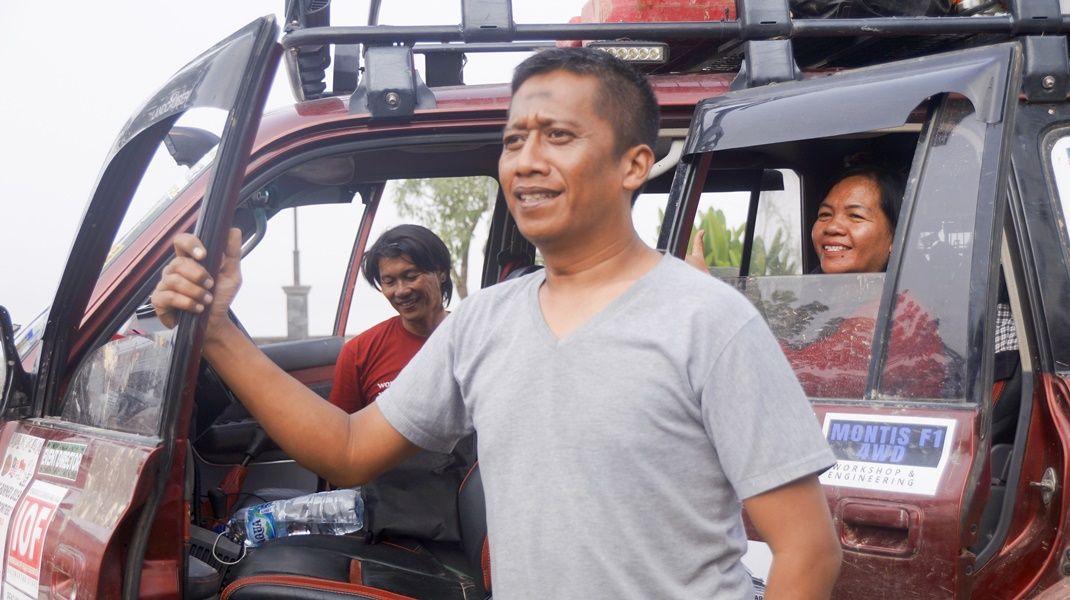 Day 7, December 3rd, the first group of 10 cars started to travel up the steep slope just under a hundred meters found the long hardcore obstracles with a line of stone like bridges full of many rutted waiting and the side were a deep abyss. And turning up to a rocky hill with many danger trenches to destroying the car's suspension along the hill road. The last hundred meters were a road that creates a large long rutting which tough and brutally, on this obstracle had to using winch by ground anchor and a large tree stump helps to winching. All 10 cars of first group spent 7 hours for passing the last hardcore obstracles. But while traveling down hill to the village of Semamu an accident occurred when a car overturned on a steep curving turn, lucky no one were hurt and arrived at Semamu village on 10 p.m.