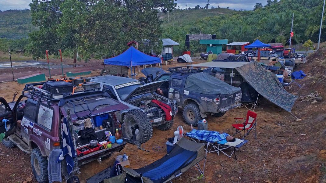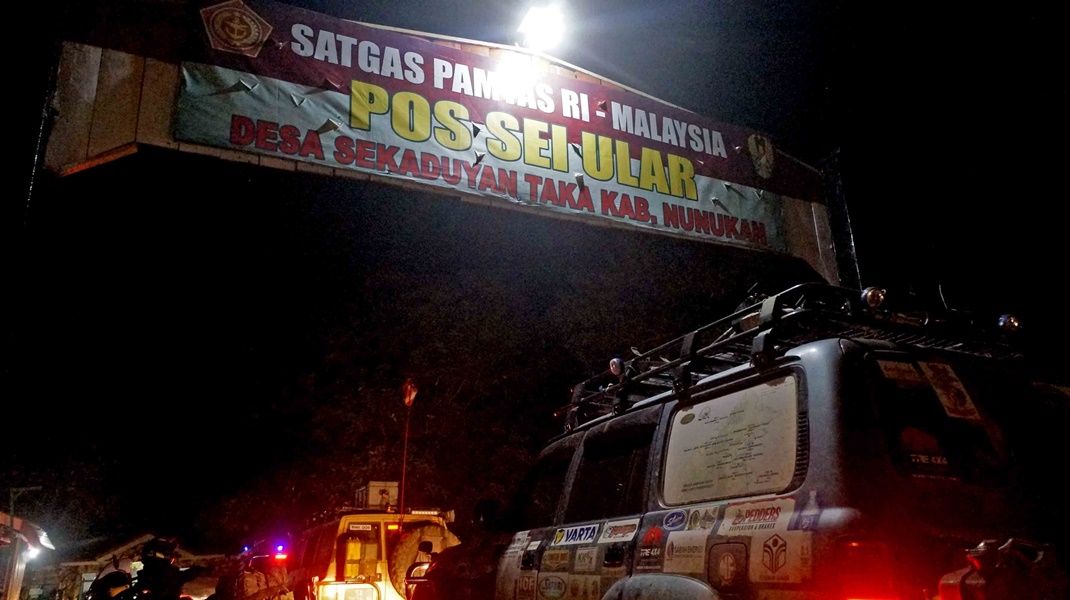 Day 11, December 7th, The trip program to Derawan Island was canceled. Because the delay of the journey for up to four days. At about 7 o'clock in the morning, the first group of 5 cars started to travel back to Malinau city. The distance was approximately 207 km and took about 5 hours, with police escorted cars taking care of safety all of the route. And both groups of convoy had assembled a total of 16 cars again and 1 big bike motorcycle of Italy in Malinau and proceeded to the Simangaris checkpoint Indonesia-Malaysia border The distance is approximately 172 kilometers. The path is a curved mountain path. So many long and steep rises Many path of the roads were under maintenance. The route was still dangerous, be careful to using the fast speed on the mountain along the route. And arrived at Simanggaris border lately it night on 11pm. Camping and overnight here in order to waiting for the immigration polices to stamp passport departure from Indonesia at noon on the next day.