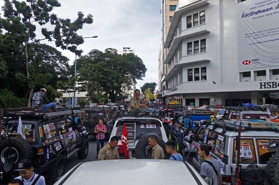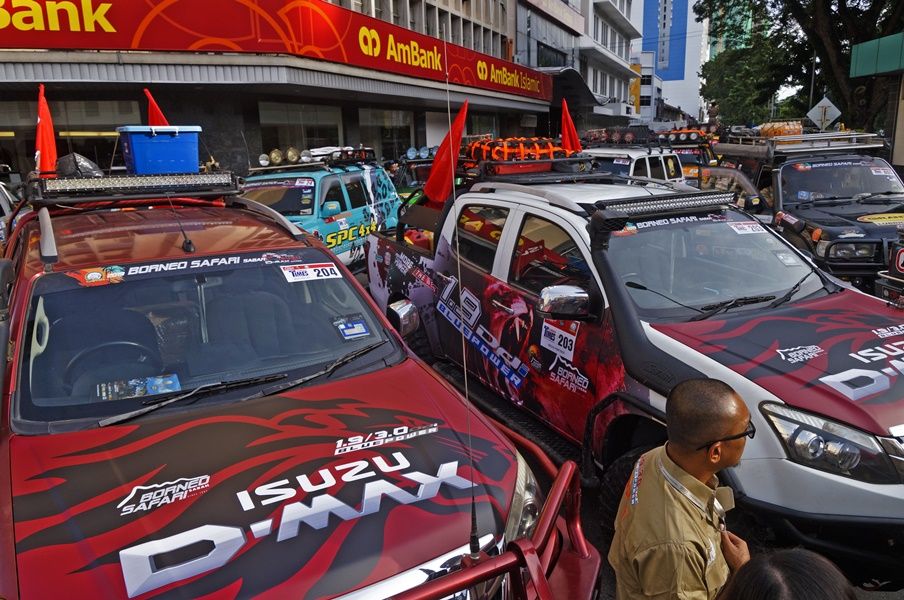 Day 1, 27 Otc. Flag off ceremony at Sabah Tourism Board Bulding were honored by YB.Datuk Christina Liew Chin jin the Minister of Tourism, Culture & Environment Sabah, Mr.Masayuki Suzuki Chief Operating Offficer, Isuzu Malaysia Hj Faez Nordin President Sabah Four Wheel Drive Association and Event Director, and many others honor to attend the ceremony, after ceremony all of 400 cars a totals of 1,220 participants from 10 countries including Russia, Japan, Australia, Spain, Philippines, Indonesia, China, Brunei, Thailand and Malaysia, 24 compete teamsstaring travel about 100 k.m. along old papar road to BEAUFORT, 3SS (SS1,SS2,SS3)at Kompleks Sukan Beaufort, camp site at Lumadan , two camp site area wiil be set up in official, media & tag on.