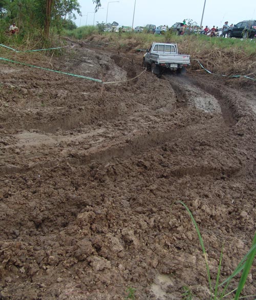 สนามแข่งขันเป็นแบบคู่ช้อตกันวันตวลทั้งสองวันรวมทั้งหมด 4SS มีลักษณะรูปแบบทั้งสนามธรรมชาติผสมกับสนามสร้างเลียนแบบธรรมชาติ ซึ่งธัชกร ทรงศิริ , ช่างโต 4x4 และณรงค์ ทองแก้ว เป็นผู้ร่วมกันสร้างสนาม กำหนดให้อุปสรรคมีทั้งทางลงชันยาว ท้องร่องน้ำใหญ่ โค้งหักศอก โค้งยาว เนินสูงชั้น เนินขวางลูกคลื่น บ่อน้ำโคลนตื้น และหลุมสลับเป็นต้น แต่หลังจากที่มีฝนตกเทลงมาอย่างหนักก่อนการแข่งขันหนึ่งวัน ทำให้สนามแข่งที่มีพื้นดินเหนียวเกือบทั้งหมด ได้เปลี่ยนสภาพสนามยากหฤโหดต่างไปจากเดิม ทำให้เกิดปัญหาที่คาดไม่ถึงและสร้างความมันส์เละเทะเฉอะแฉะของการต่อสู้ผจญภัยแบบออฟโรดตื่นเต้นและเร้าใจในโคลนเลนได้อย่างสนุกสนานน่าหวาดเสียวเกือบตลอดเวลา!
