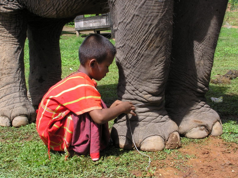 กันมายาวนาน ทั้งการใช้ช้างเพื่อการทำศึกสงคราม และการทำงาน เช่นเดียวกับที่บ้านใหม่พัฒนา ตำบลหนองลู อำเภอสังขละบุรี จังหวัดกาญจนบุรี ที่ชาวบ้านเชื้อสายกะเหรี่ยง มีประเพณีการเลี้ยงขอบคุณช้างเป็นวัฒนธรรมเก่าแก่ที่ยังคงสืบทอดกันมา นับเป็นอีกตัวอย่างหนึ่งของความผูกพันระหว่างช้างกับคน