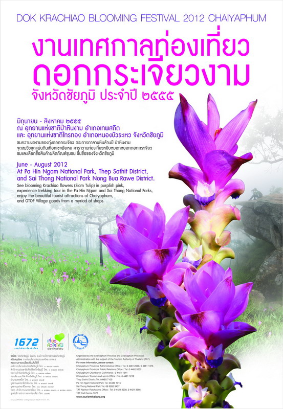 จังหวัดชัยภูมิ ร่วมกับ การท่องเที่ยวแห่งประเทศไทย (ททท.) สำนักงานนครราชสีมา และหน่วยงานภาครัฐ ภาคเอกชนที่เกี่ยวข้อง ขอเชิญทุกท่านร่วม หยิบหมอก หยอกดอกกระเจียว งานเทศกาลท่องเที่ยวดอกกระเจียวงามจังหวัดชัยภูมิ ประจำปี