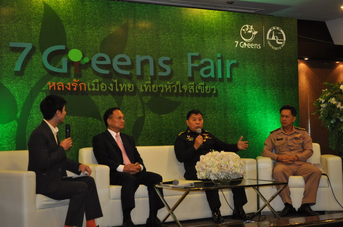 นายสุรพล เศวตเศรนี ผู้ว่าการการท่องเที่ยวแห่งประเทศไทย (ททท.) เปิดเผยว่า ททท. ร่วมกับ กองทัพบก และกองทัพเรือ จัดงาน 7Greens Fair ภายใต้คอนเซป หลงรักเมืองไทย เที่ยวหัวใจสีเขียว ในระหว่างวันที่ 3 5 พฤษภาคม 2556 ณ ศูนย์การค้าเซ็นทรัลเวิล์ด โดยมีวัตถุประสงค์เพื่อส่งเสริมและปลุกจิตสำนึกการท่องเที่ยวอย่างใส่ใจสิ่งแวดล้อม รวมทั้งกระตุ้นตลาดการเดินทางท่องเที่ยวภายในประเทศ