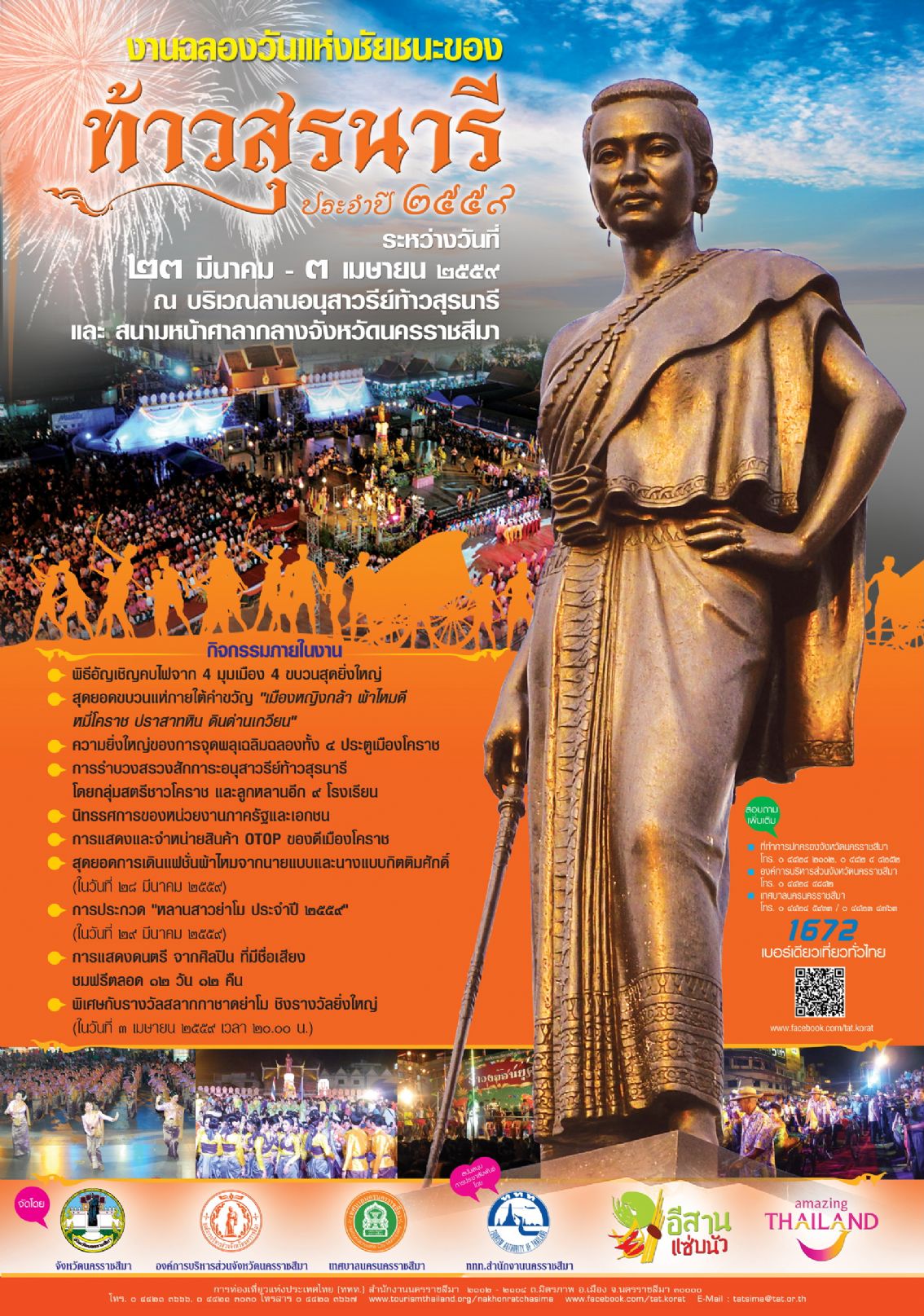 ททท.นครราชสีมา ขอเชิญทุกท่านร่วมงานฉลองวันแห่งชัยชนะของท้าวสุรนารี ประจำปี ๒๕๕๙
