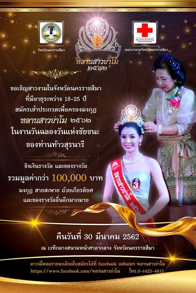 วันเสาร์ที่ 31 มีนาคม 2562 การประกวดหลานสาวย่าโม และการแสดงของศิลปิน สุนารี ราชสีมา