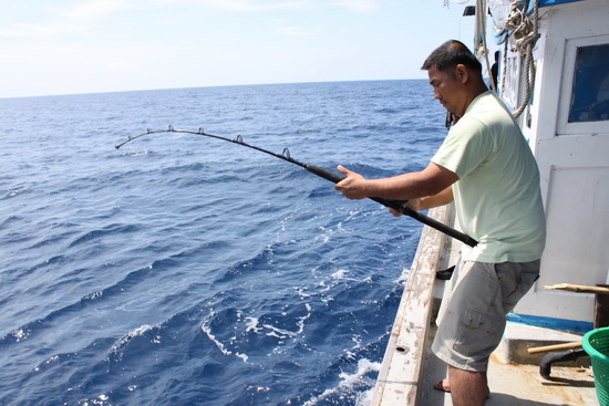 กัปตันนุ เริ่ม ตีวน บังคับเรือวนรอบหา เชื้อปลาที่ระดับความลึก 200 เมตร ก่อนจะร้องสั่งน้าเหน่ง ให้ทิ้งสมอ น้าเหน่งทิ้งหมอเลย เอ้าทิ้ง เสียงสมอตกน้ำดัง ตูม กัปตันนุปล่อยให้เรือไหลอิสระ |