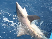 ในขณะที่พี่ชาญออกแรงงัดคันอยู่นั้น ก็ปรากฏเรือนร่างขนาดมหึมาของปลากระโทงแทง ข้างท้ายเรือทางซ้ายมือ มันกระโดดสะบัดงวงของมันห่างจากเรือไปไม่เกิน 30 เมตร ทุกคนที่ได้เห็นขนาดความใหญ่โตของมัน อย่างถนัดตา โอ้! พระเจ้าช่วยกล้วยทอด เสียงใครคนหนึ่งร้องอุทานออกมาอย่างดัง |