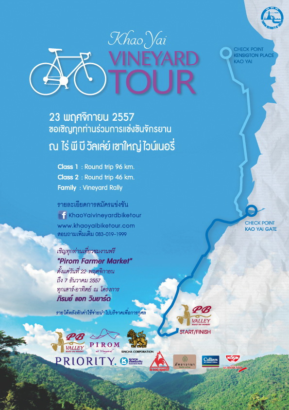 ททท. สำนักงานนครราชสีมา ขอเชิญทุกท่านร่วมการแข่งขันจักรยาน KHAO YAI VINEYARD TOUR ครั้งที่ 1