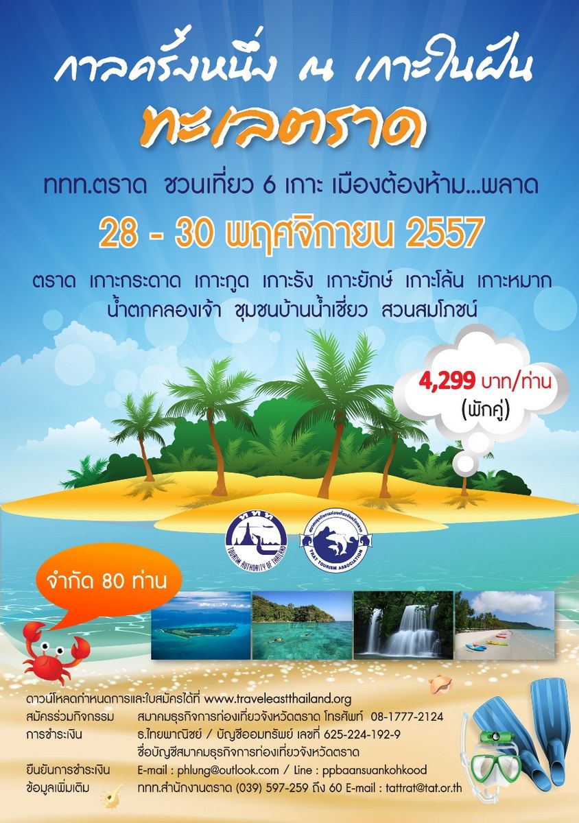 ททท.ตราด ชวนเที่ยว 6 เกาะ 28-30 พ.ย. 57 รับ 80 ท่านเท่านั้น