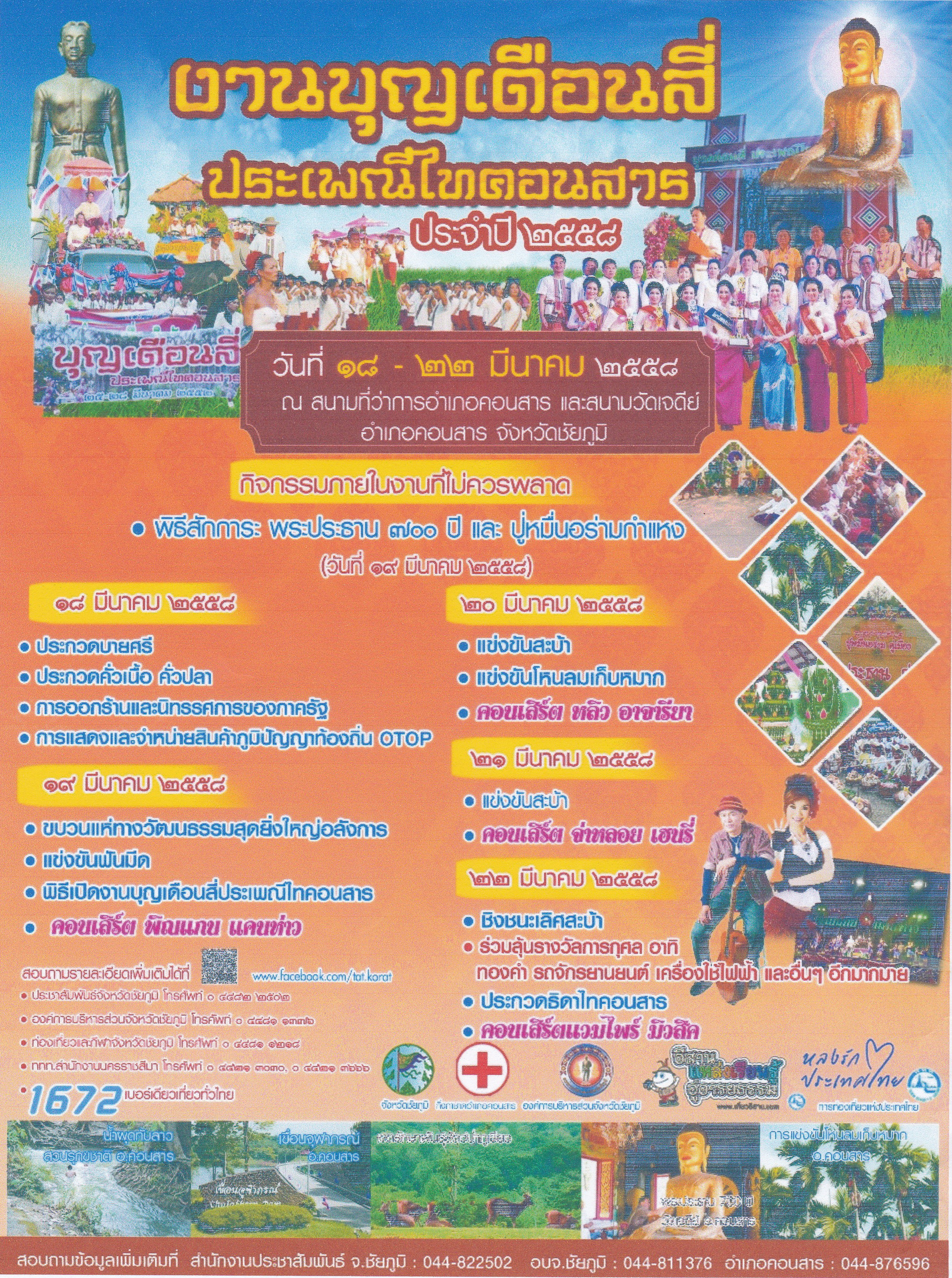 ททท.สำนักงานนครราชสีมาขอเชิญทุกท่านร่วมงาน งานบุญเดือนสี่ ประเพณีไทคอนสาร ประจำปี 2558