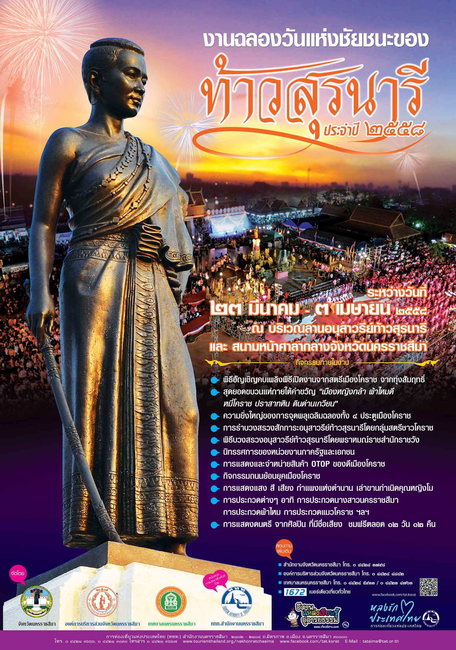 ททท.นครราชสีมา ขอเชิญทุกท่านร่วมงานฉลองวันแห่งชัยชนะของท้าวสุรนารี ประจำปี ๒๕๕๘