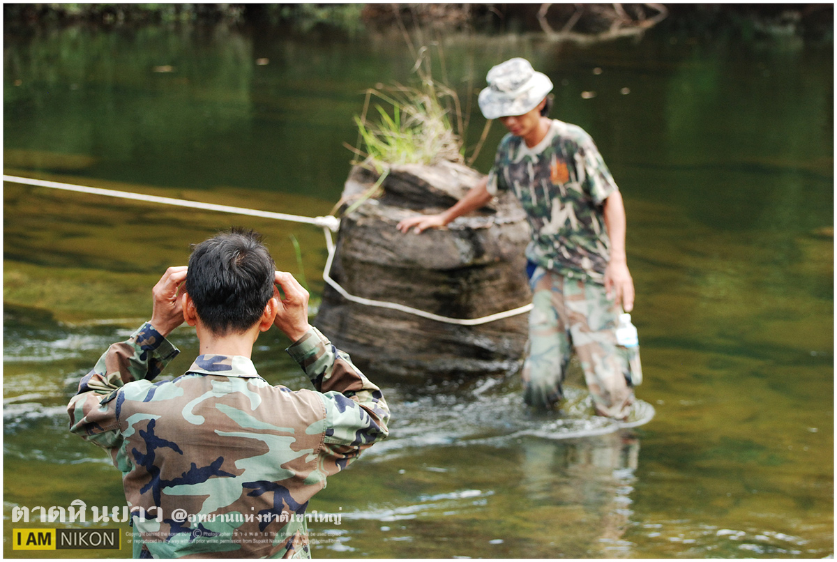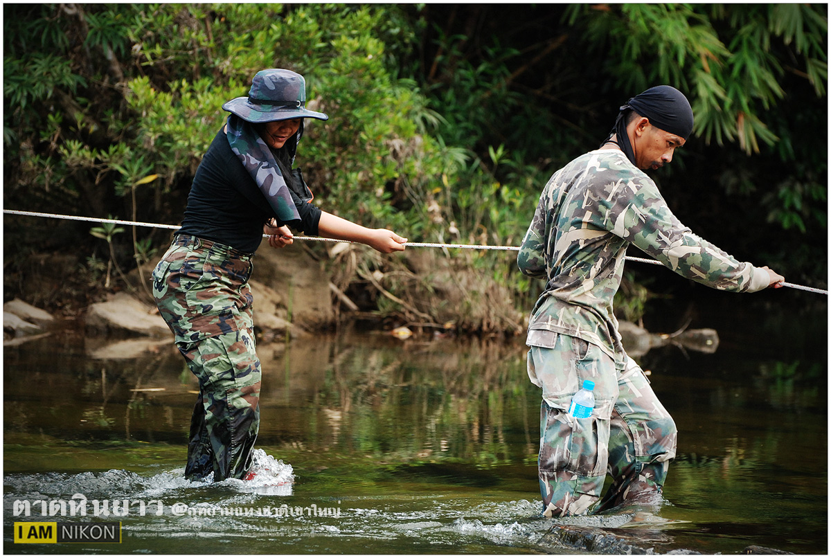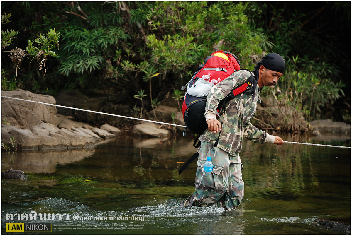 ถึงแม้น้ำจะแค่หัวเขา แต่เป็นการข้ามน้ำระยะไกล สิ่งที่ต้องคิดถึงคือ อย่าประมาท ต้องปลอดภัยที่สุด เรามีเชือกต้องใช้ เพราะถ้าหาก บางคน ลื่นล้มแล้วไม่มีเชือกคอยจับถือ มีสิทธิที่จะไหลไปกับน้ำได้ และจุดที่เราข้าม ห่างไป ประมาณ 2 เมตร เป็นทางโขดหิน น้ำไหลเชี่ยวมาก